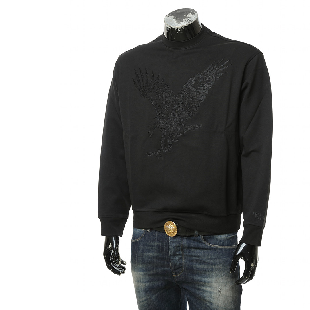 Armani/阿玛尼AX男士时尚休闲刺绣鹰标套头圆领卫衣6DZMAE ZJKBZ