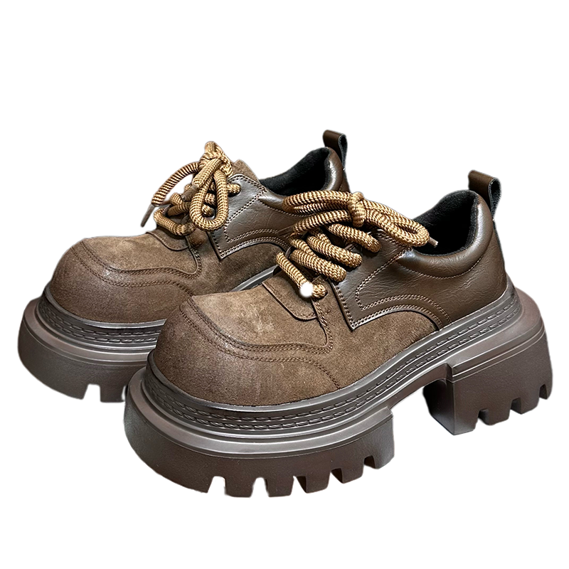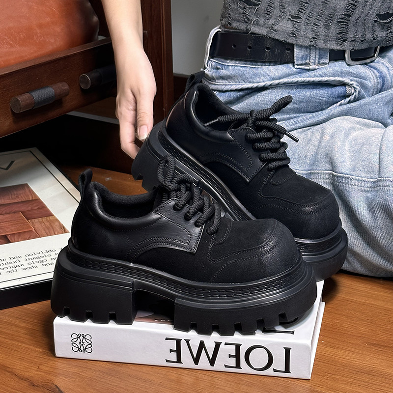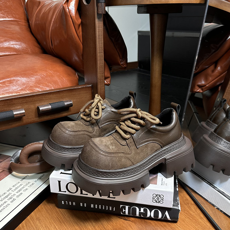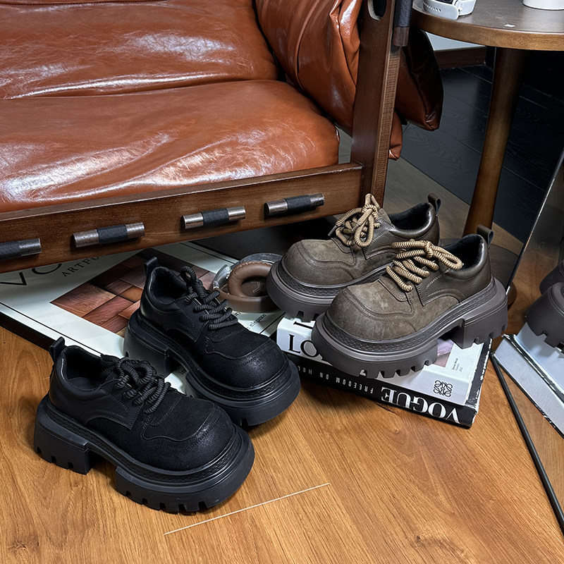 欧货真皮松糕厚底小皮鞋女英伦风圆头德比鞋小个子增高加绒乐福鞋