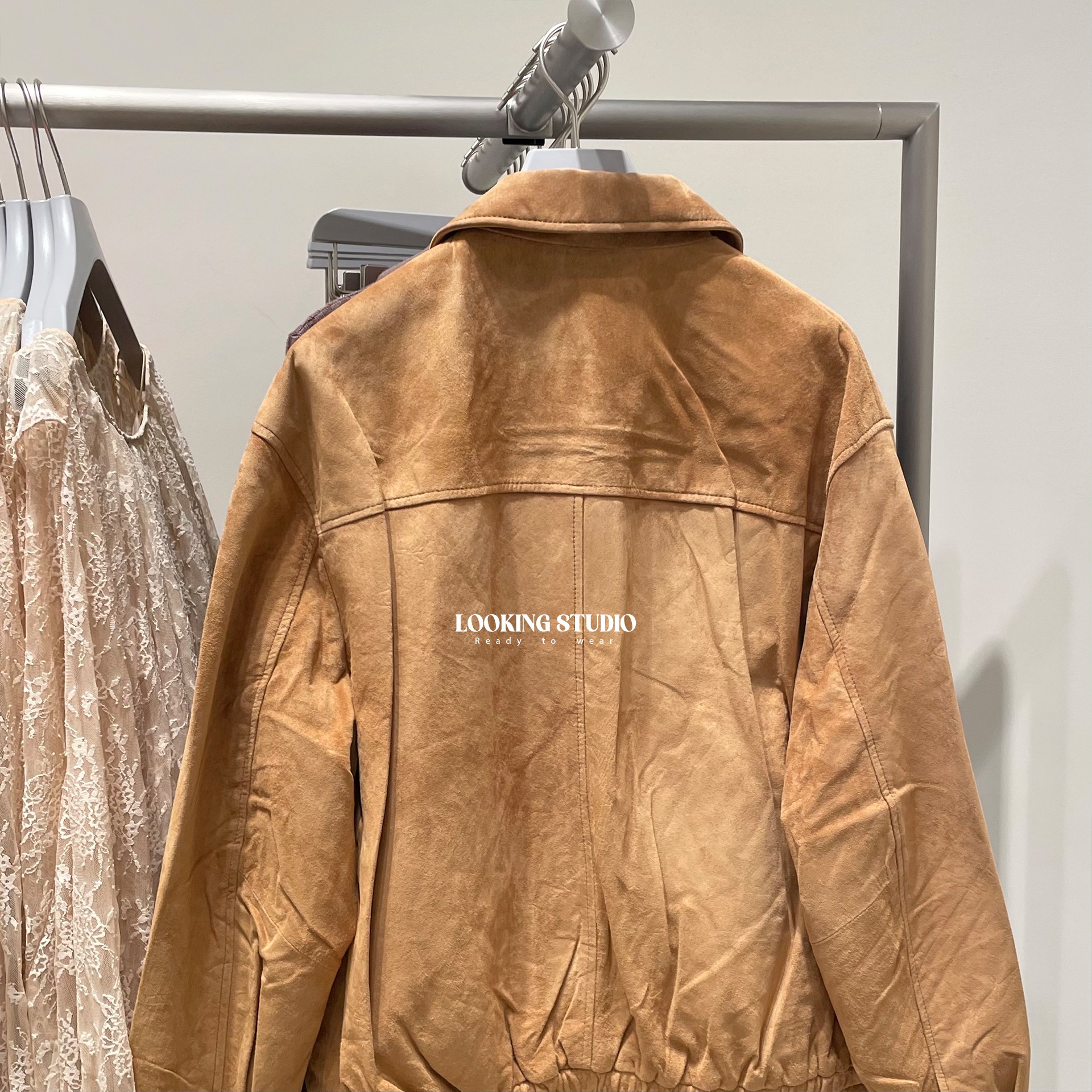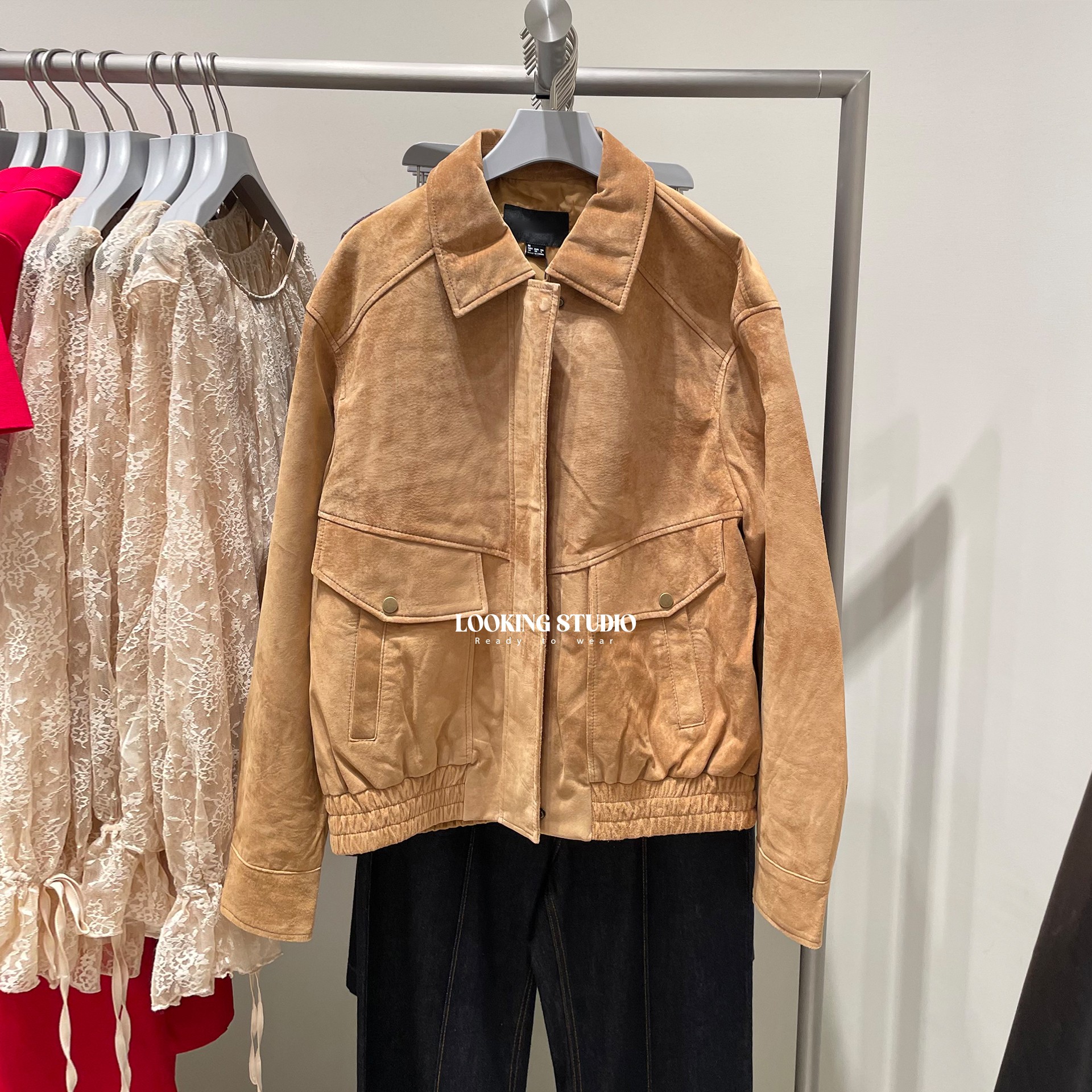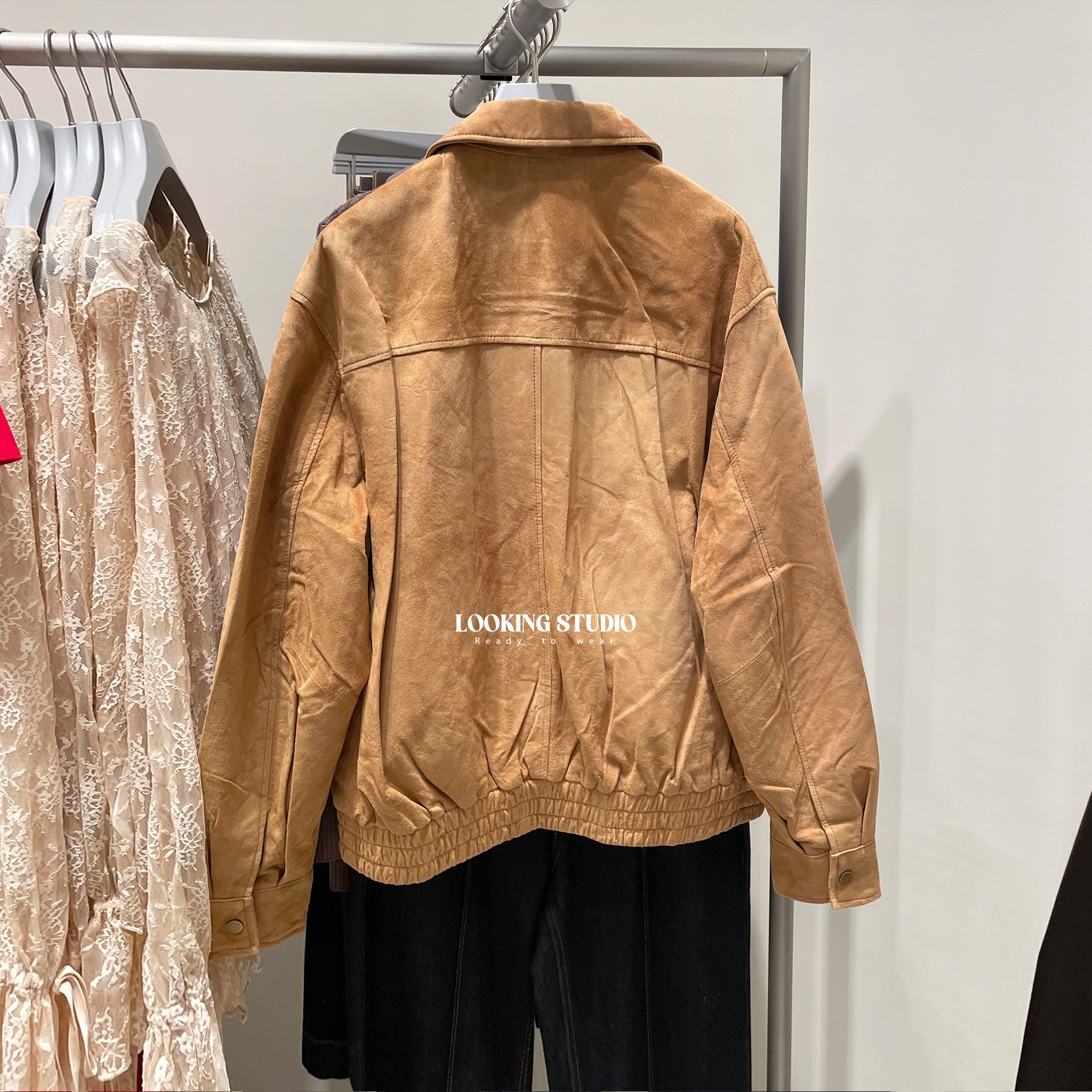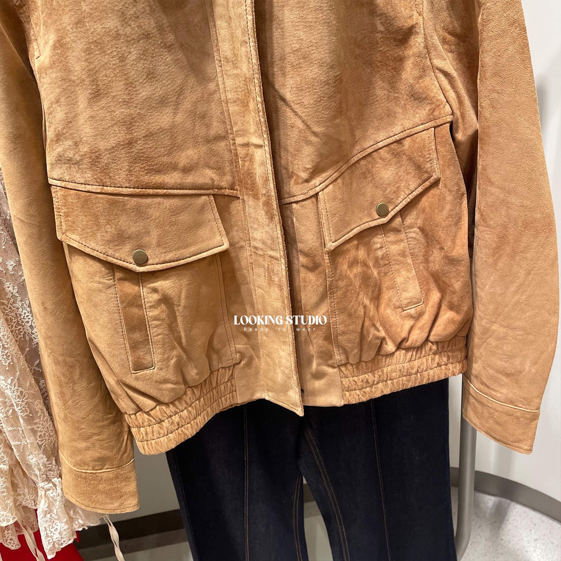 UR&DC2025秋季新款复古休闲工装风翻领麂皮皮衣超宽松短款外套女