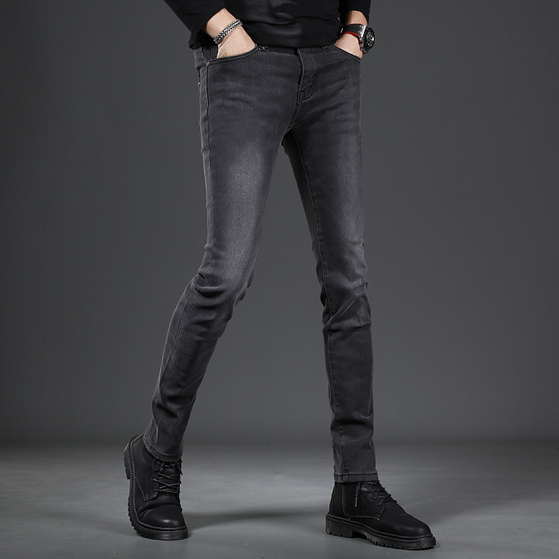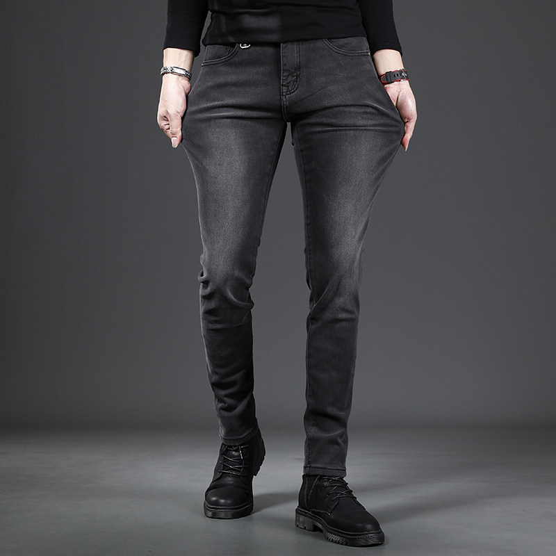 高端冬季加绒牛仔裤男款2025新款黑色修身小脚弹力男士裤子秋冬款
