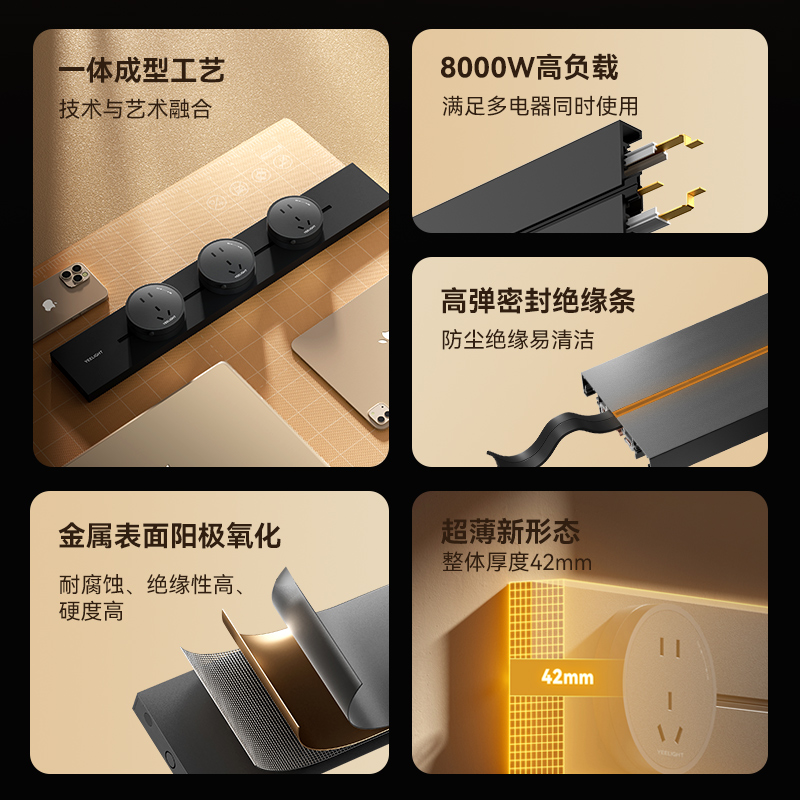 yeelight易来T1轨道插座独立开关餐边柜明装滑动移动电力轨道插排