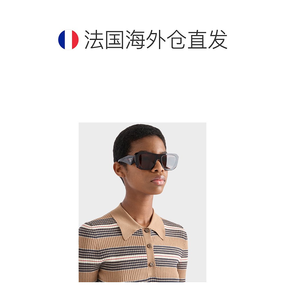欧洲直邮PRADA (2025新品) 条纹棉质polo衫短袖针织女装针织衫