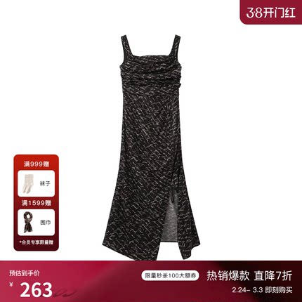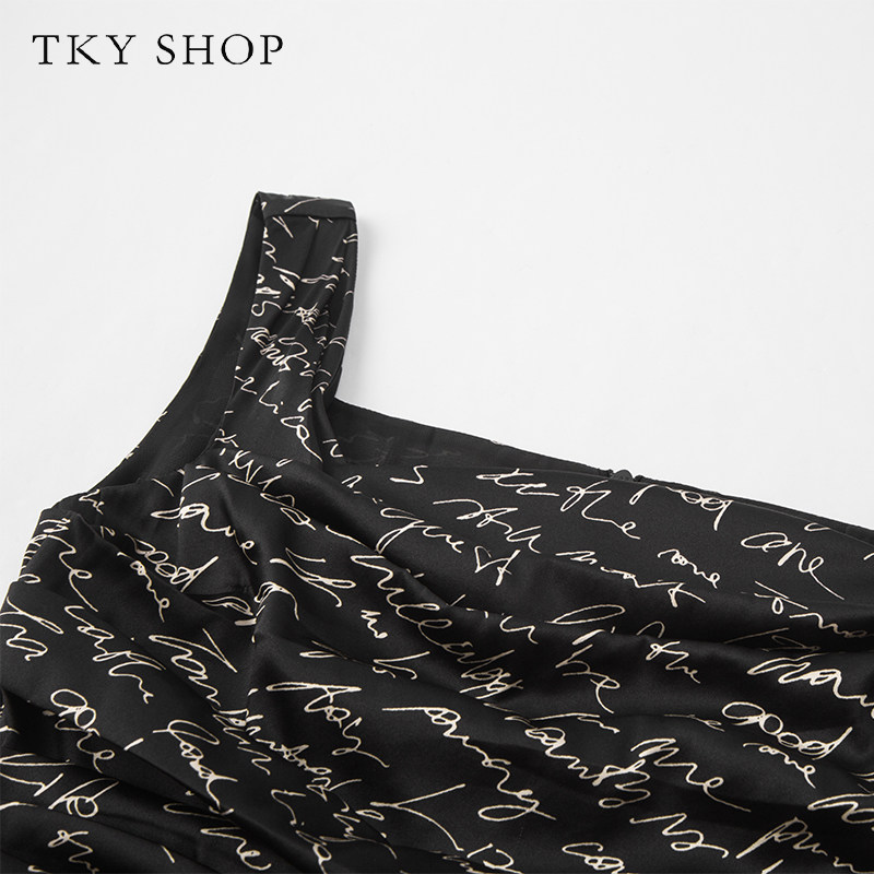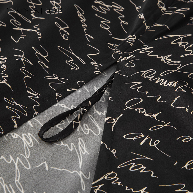 TKYSHOP真丝黑色印花连衣裙