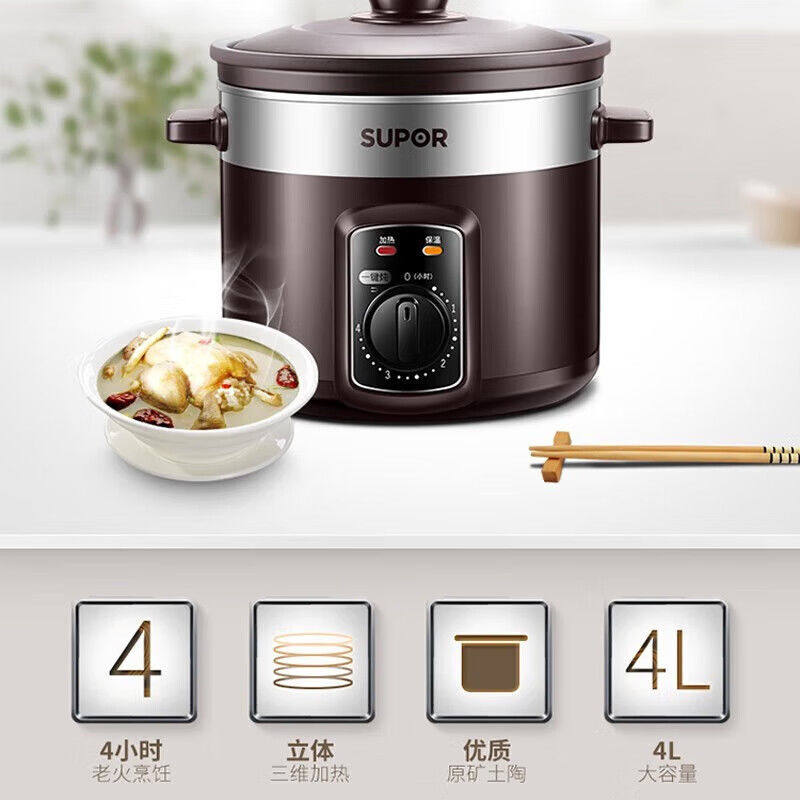 苏泊尔电炖锅4L大容量家用定时紫砂锅煲汤炖肉电砂锅正品DG40YK6