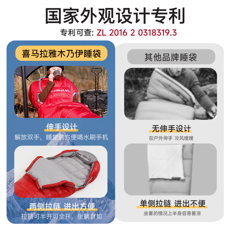 喜马拉雅羽绒睡袋冬季加厚防寒户外露营成人轻量化便携式鹅绒抗寒