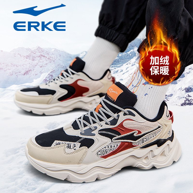鸿星尔克加绒男鞋保暖厚底运动鞋2026冬季新款青少年国潮休闲棉鞋