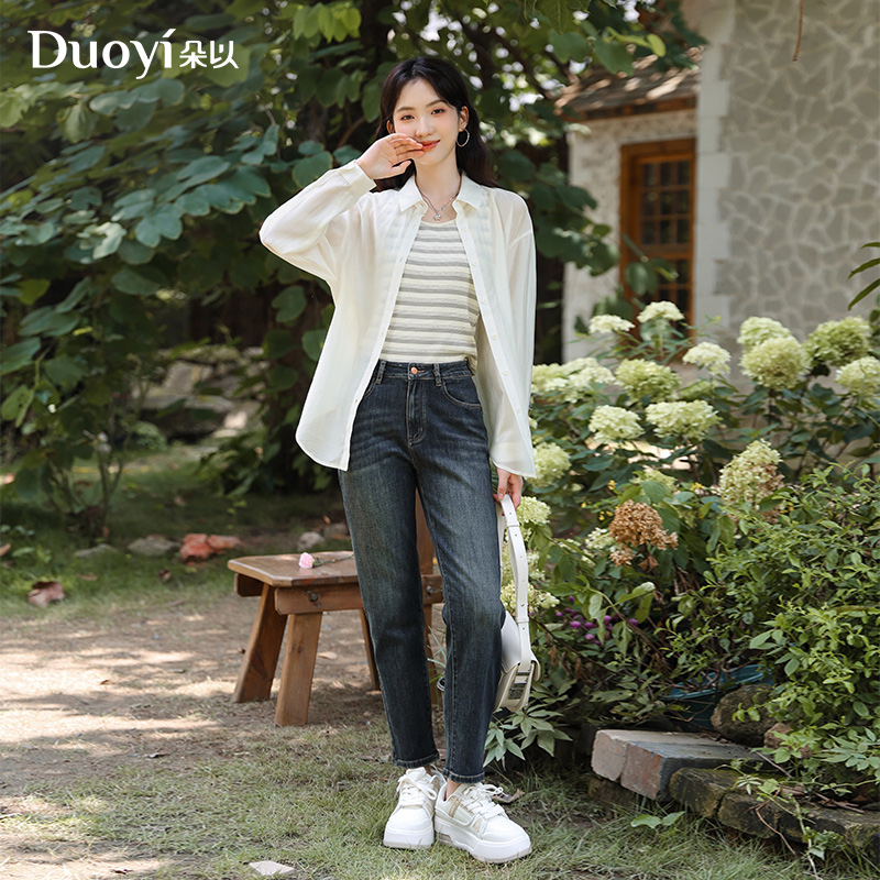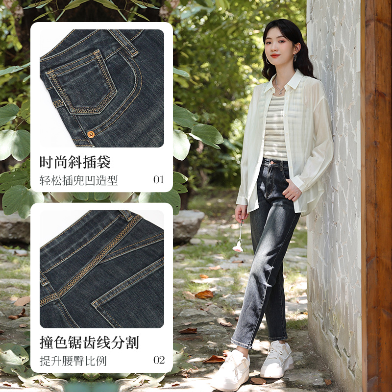 朵以2024秋季新款韩版简约时尚复古百搭通勤显瘦牛仔裤烟管裤女