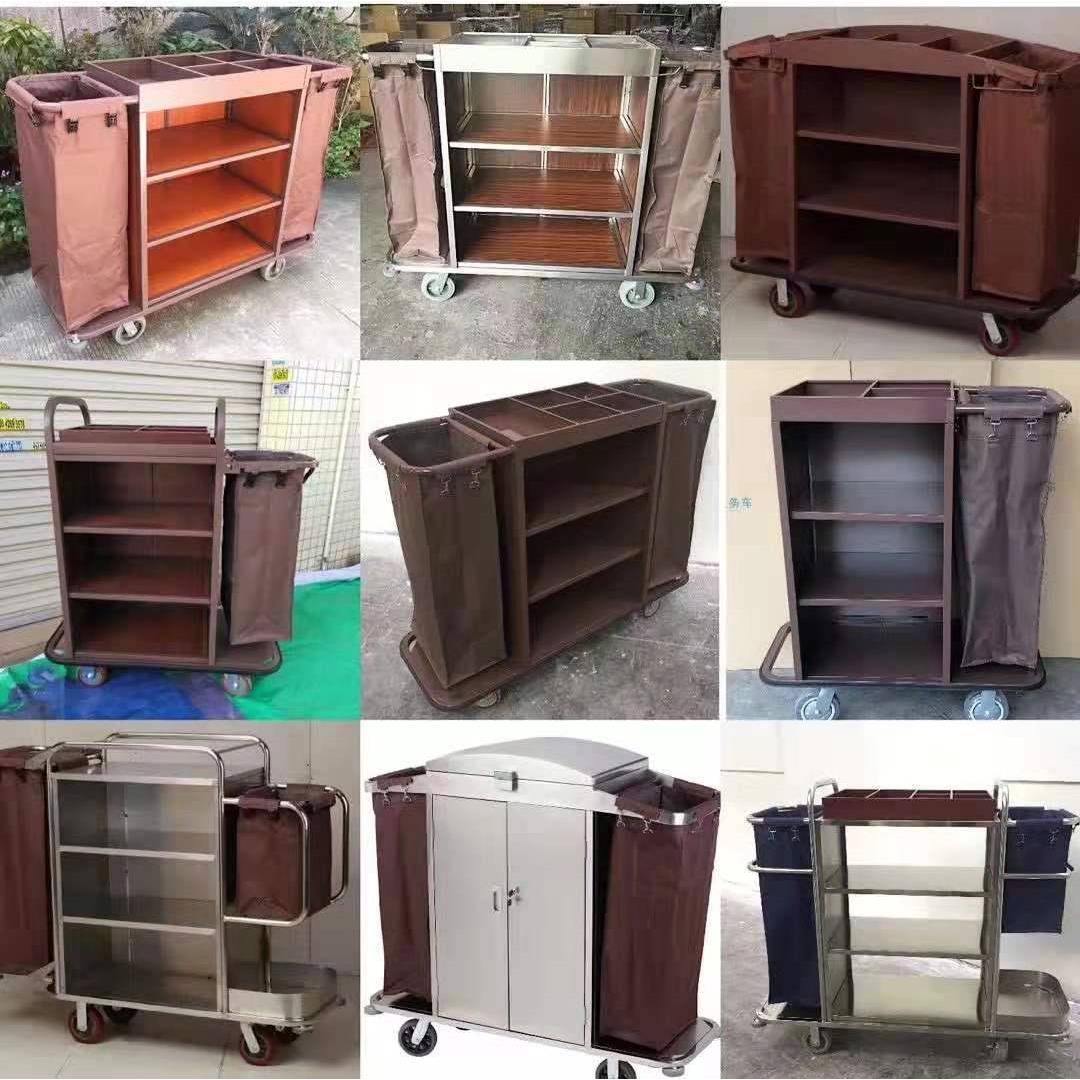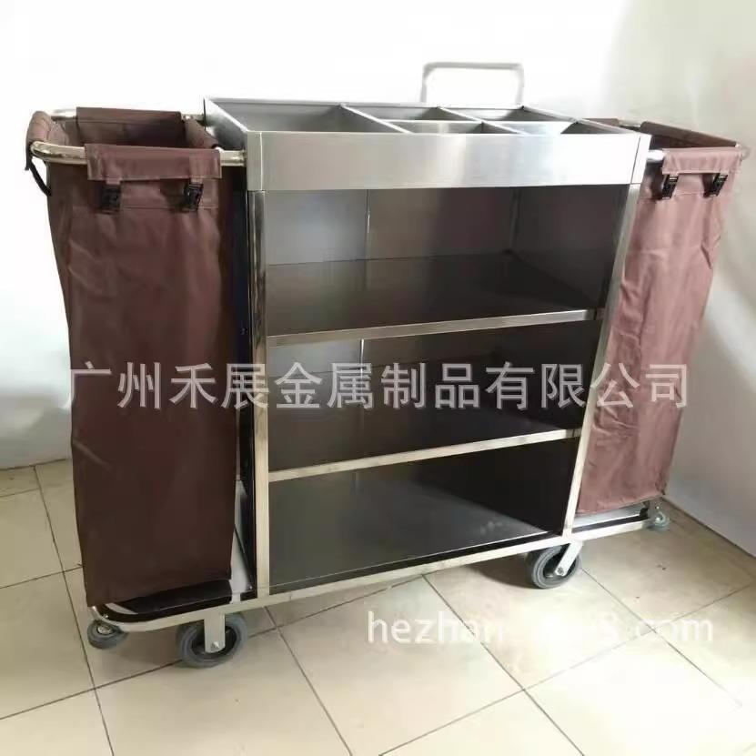 厂家直销不锈钢双边房口车不锈钢酒店客房服务车手推车布草车