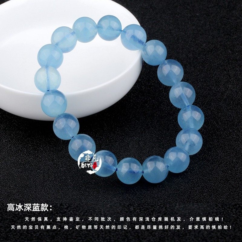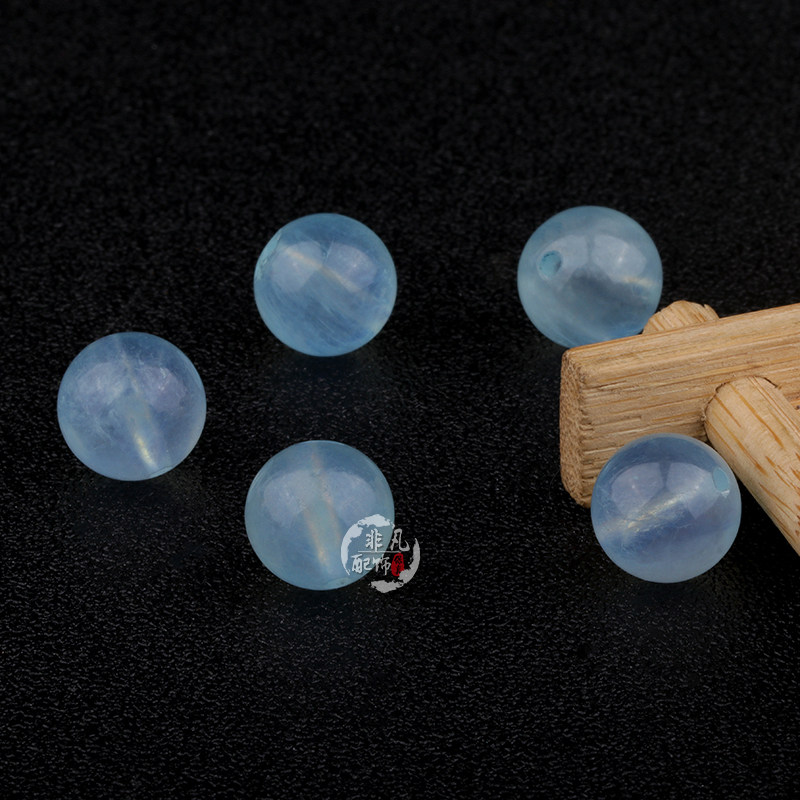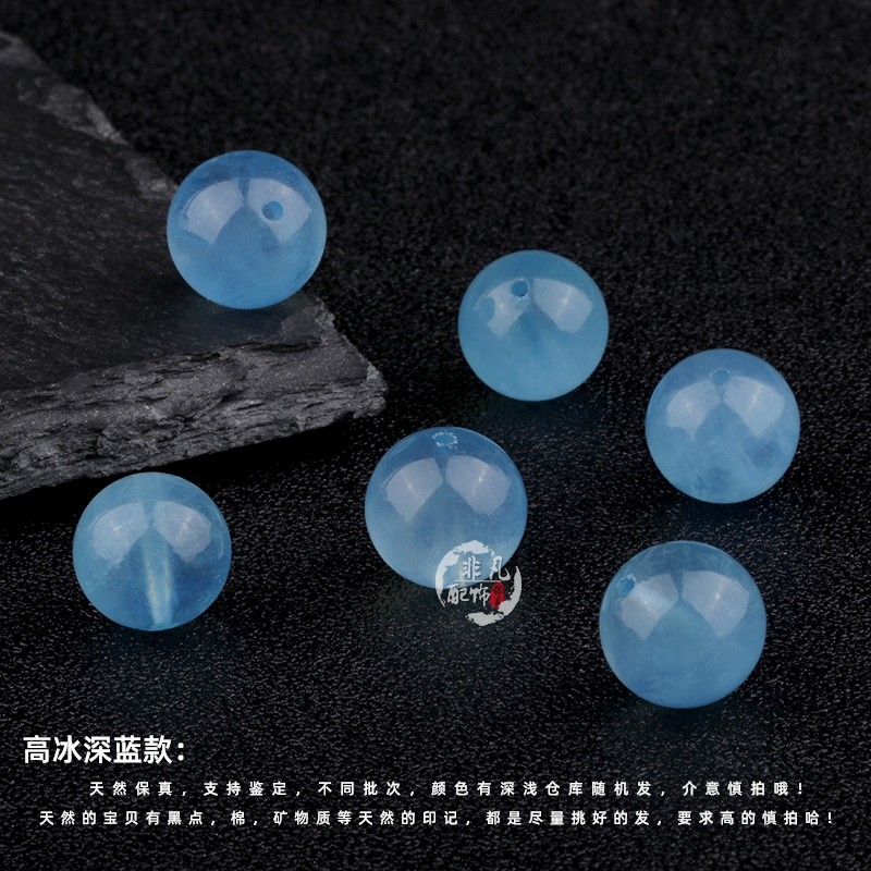 DIY天然海蓝宝散珠 海蓝水晶散珠 饰品配件海蓝宝圆珠多宝配饰