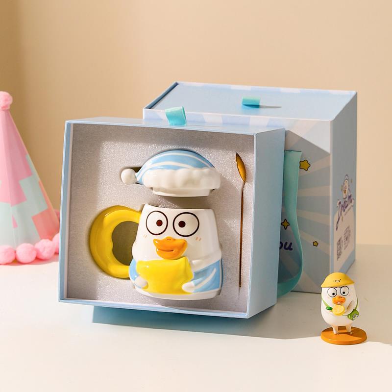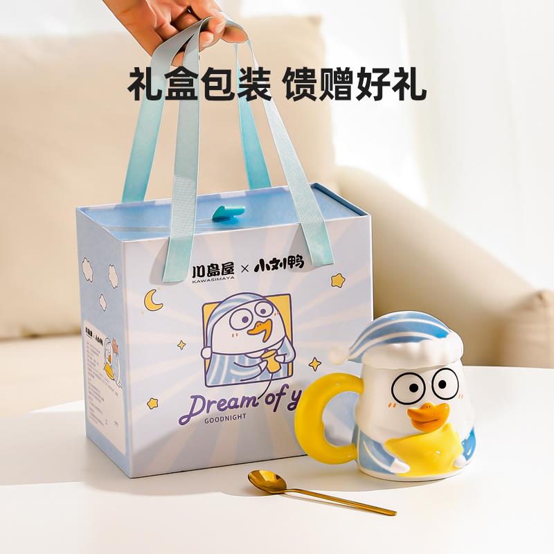 川岛屋&小刘鸭联名 可爱马克杯带盖带勺咖啡杯子陶瓷水杯生日礼物