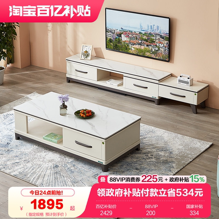 全友家居岩板茶几电视柜组合可伸缩电视柜客厅家用成套家具组合