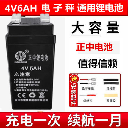 正中锂电池电池4V6AH/20HR 电子秤计价秤台称 4V5AH/20HR电子称专