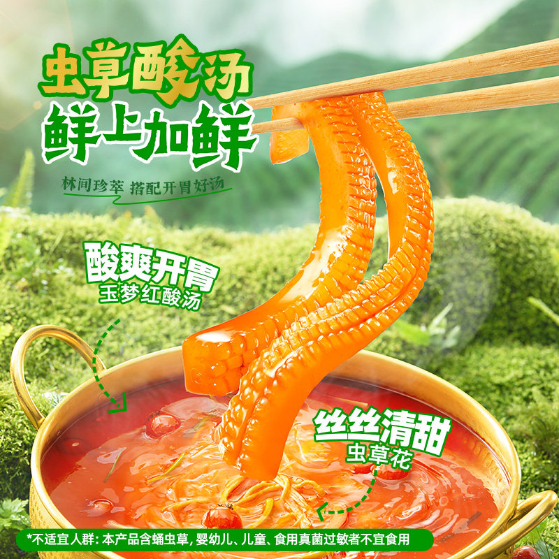 盐津铺子虫草花红酸汤味菌菇魔芋