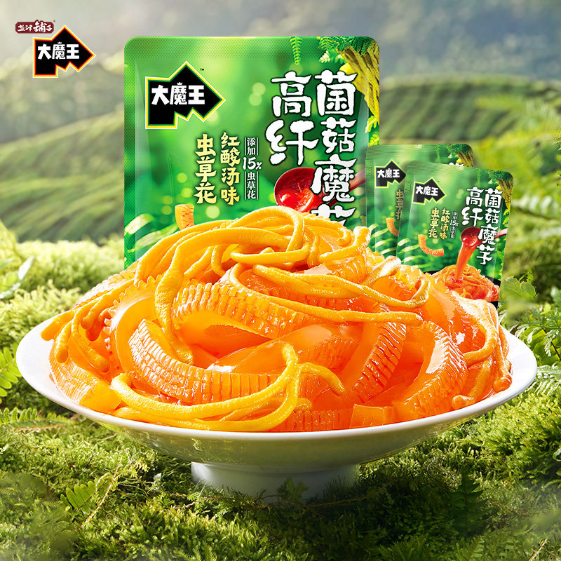盐津铺子大魔王高纤菌菇魔芋虫草花红酸汤味爽休闲解馋小吃零食