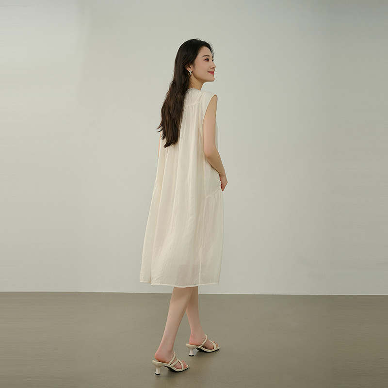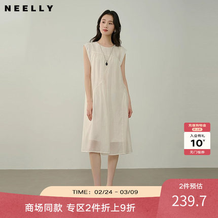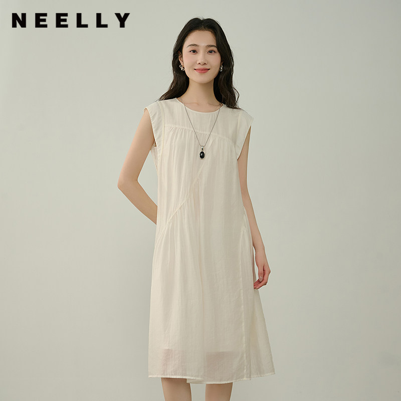 NEELLY纳俪商场同款夏新款时尚减龄圆领背心裙女舒适百搭款连衣裙