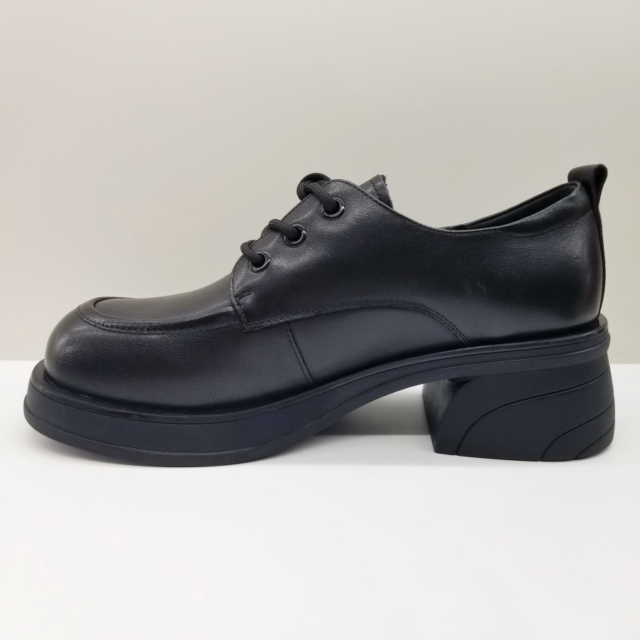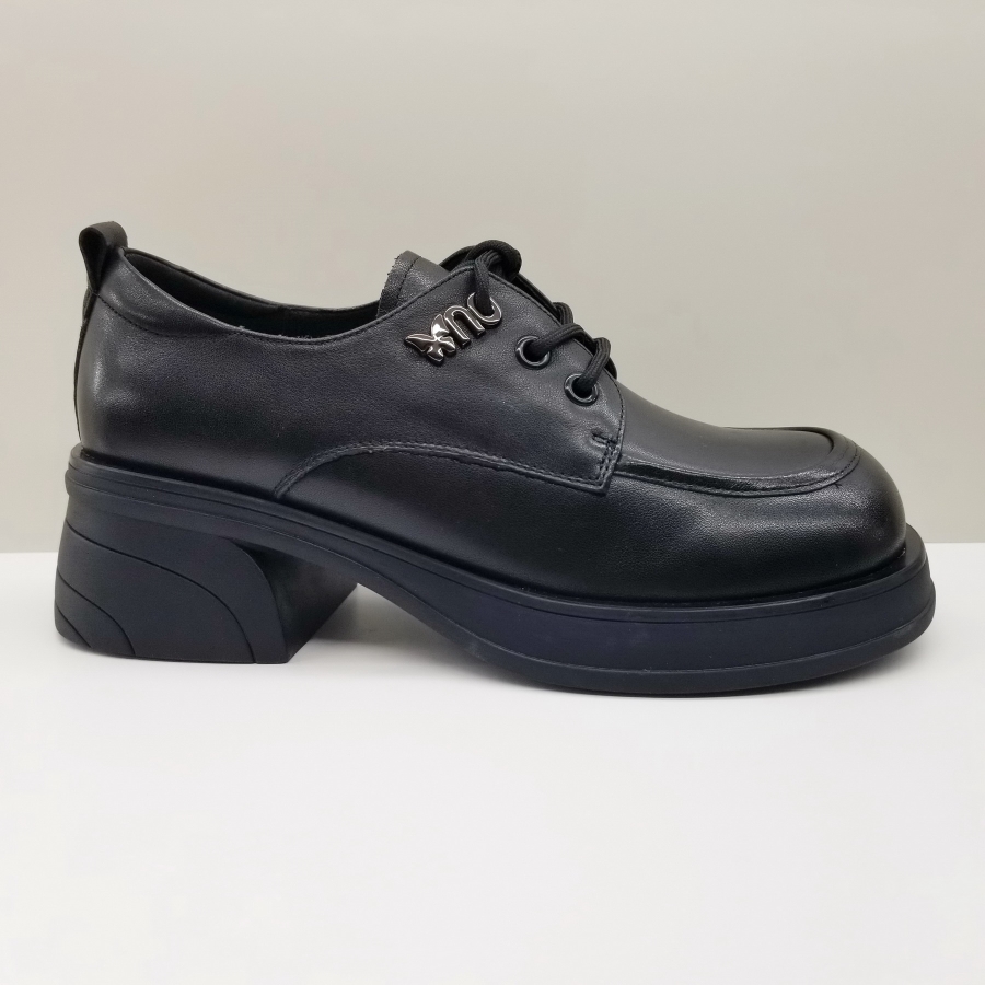 意尔康女鞋2024秋季新款英伦软真皮粗跟舒适系带乐福鞋厚底皮鞋女