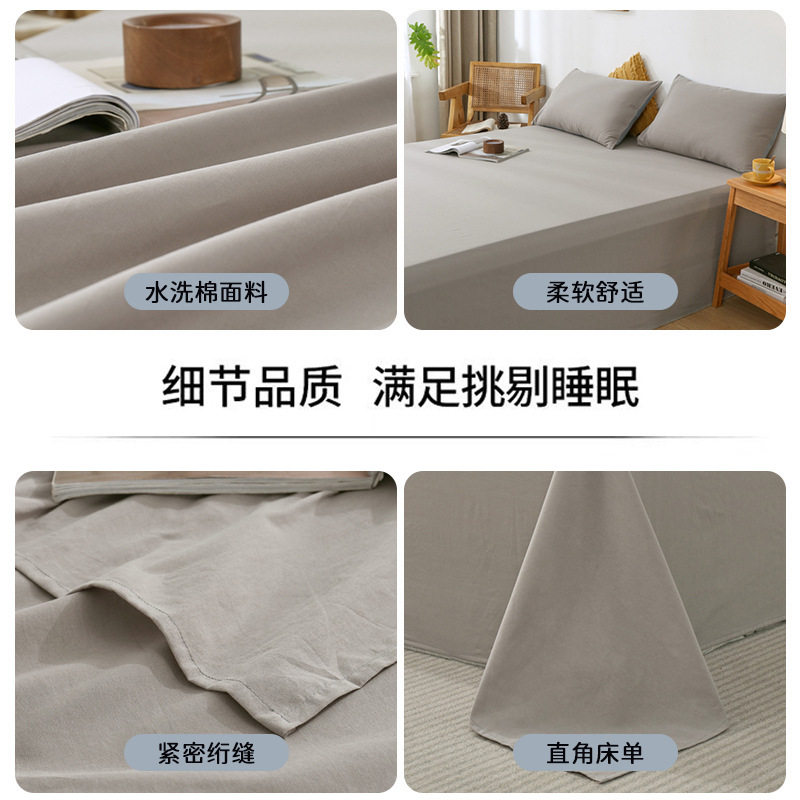 日系水洗棉床单纯色单件被单学生宿舍单人三件套枕套双人榻榻米床