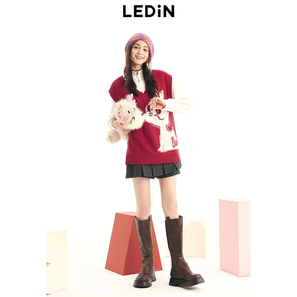 乐町趣味宽松线背心2025秋季新款马甲女C2EFE11