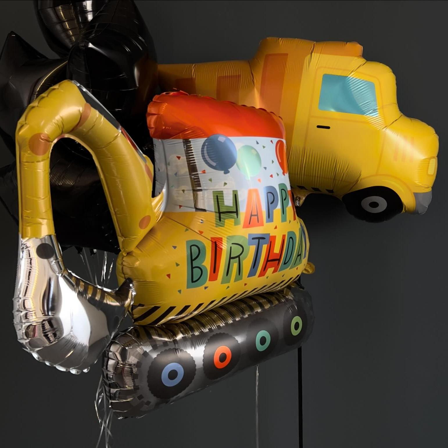 挖土机气球卡通车汽车气球建筑车工程车吊车叉车男孩生日玩具礼物