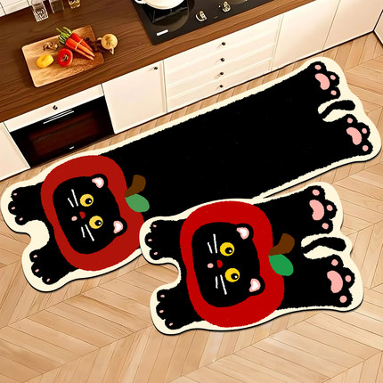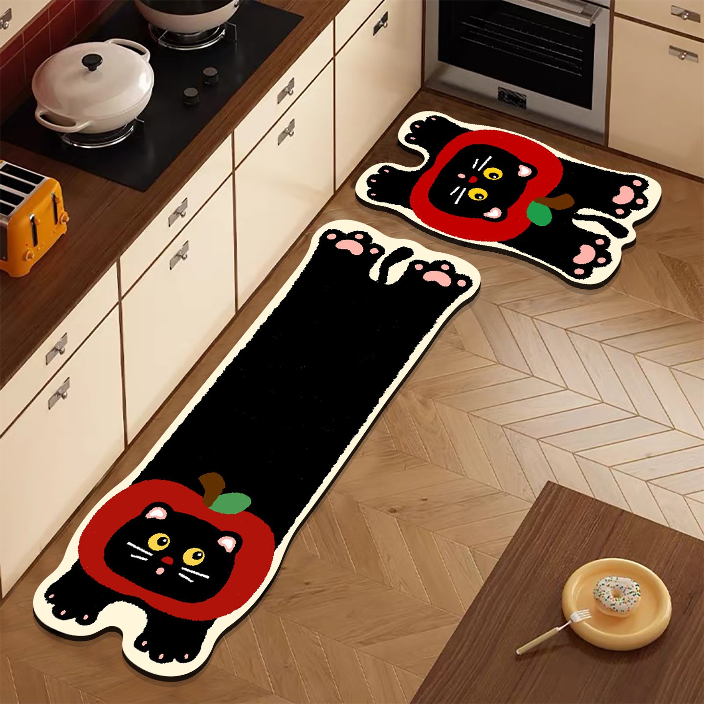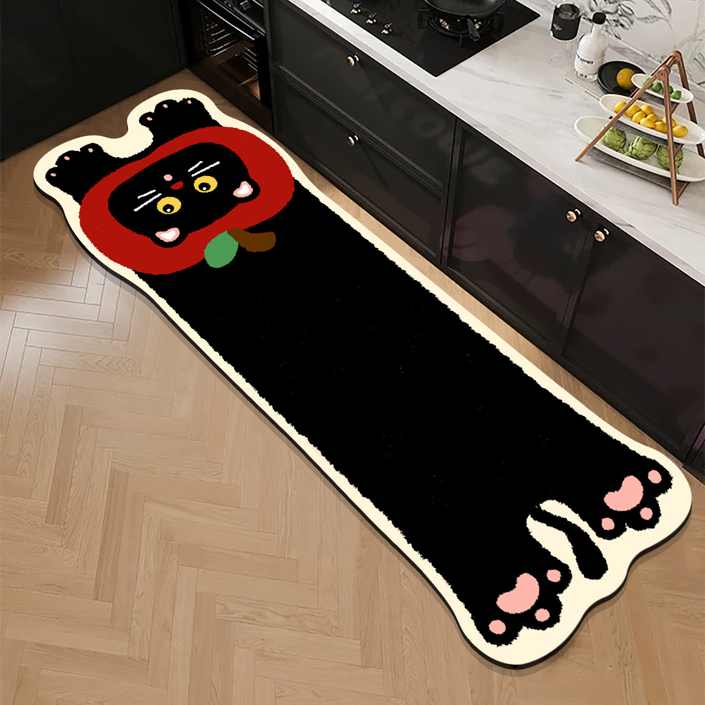 卡通猫咪软硅藻泥厨房地垫吸水防滑防油长条大小块厨房地毯脚垫子