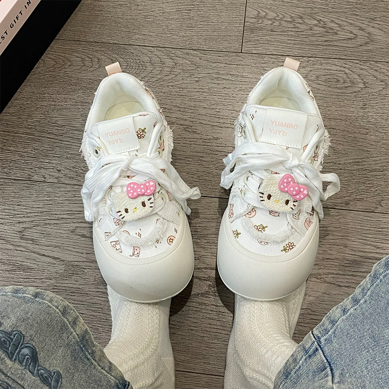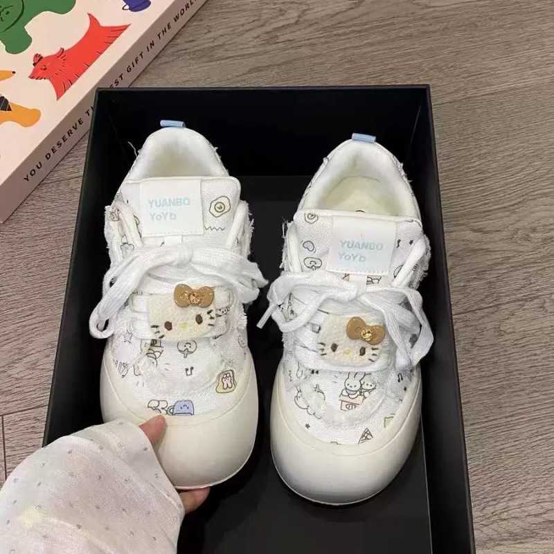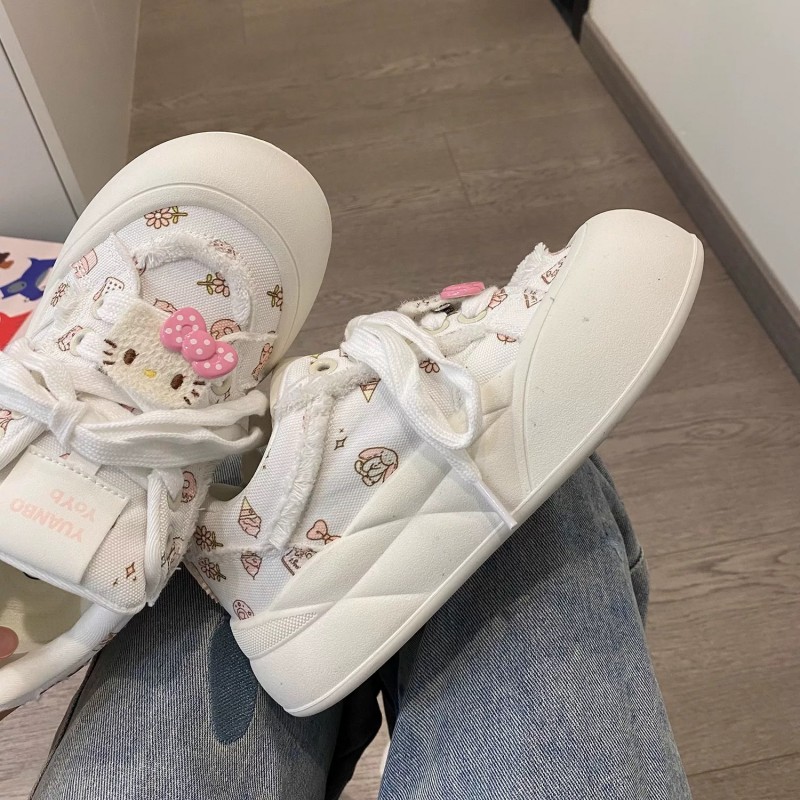 女童小众百搭蝴蝶结2025夏秋季白色板鞋儿童面包鞋学生厚底帆布鞋