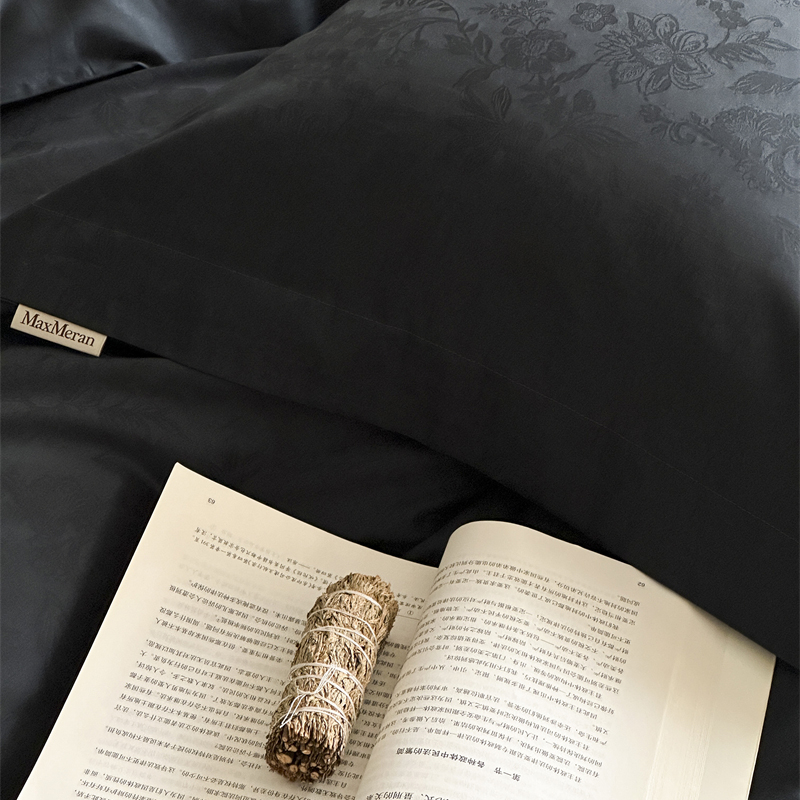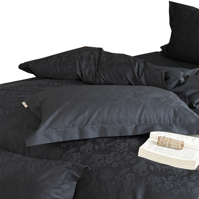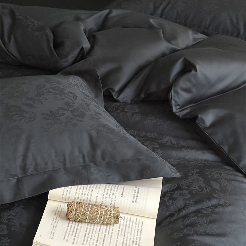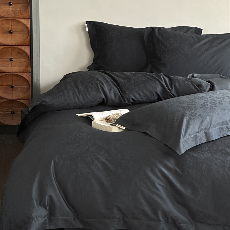 100s高支提花长绒棉复古烟灰床上四件套1.5m1.8全棉床单被套裸睡