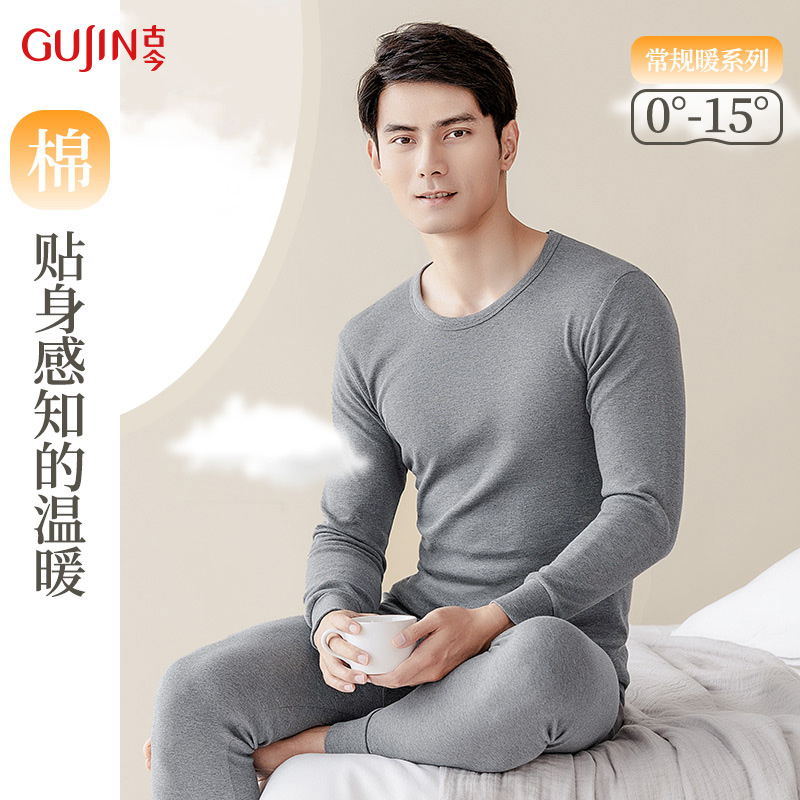 古今纯棉秋衣秋裤男士打底薄款棉毛衫线衣线裤男保暖内衣套装全棉