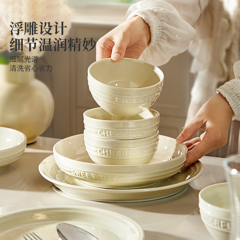 釉下彩白色盘子菜盘家用2025新款碗碟餐具高级感碟子陶瓷深盘餐盘