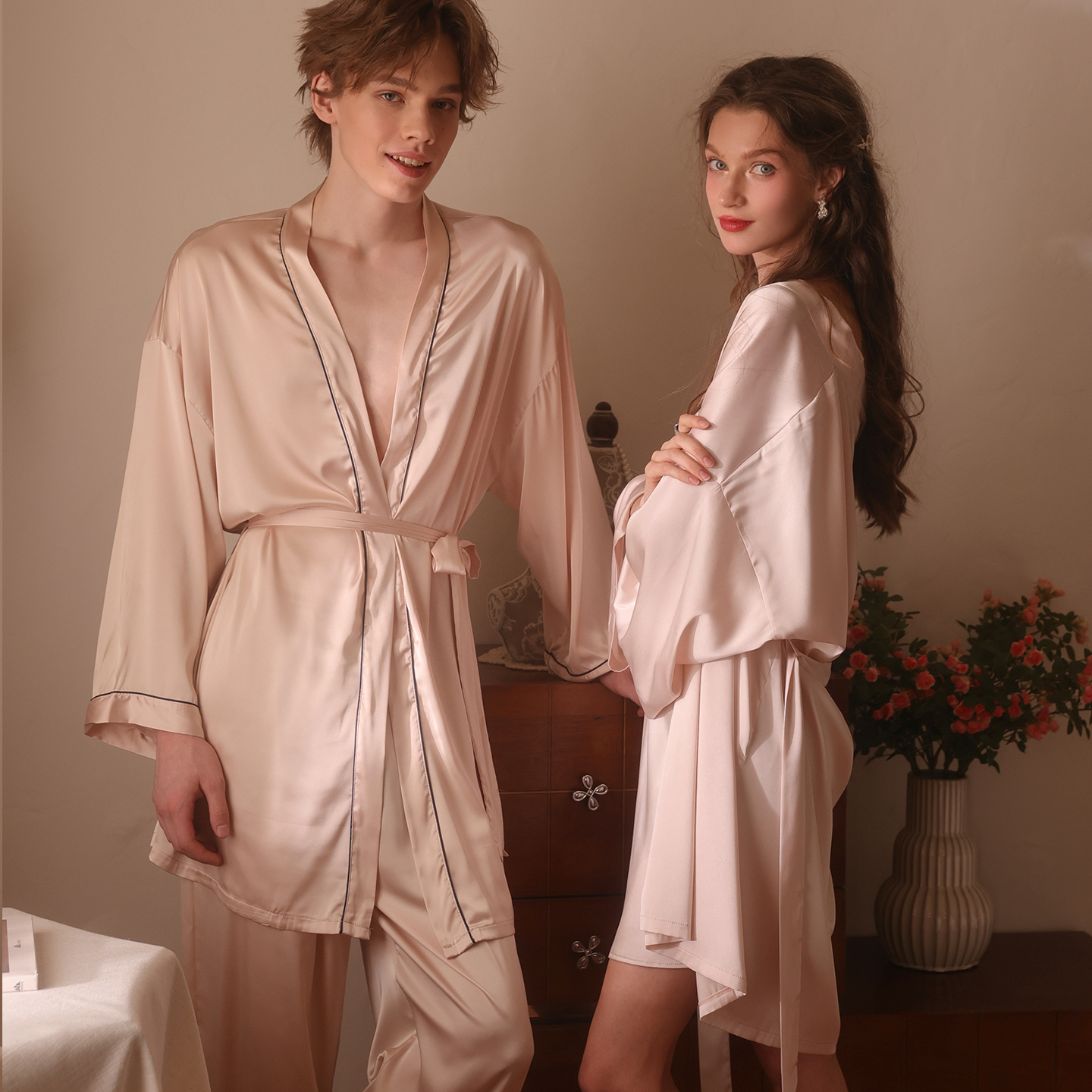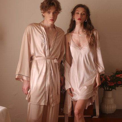 今夕何夕情侣睡衣秋冬女性感吊带睡裙睡袍套装高级感冰丝男士套装