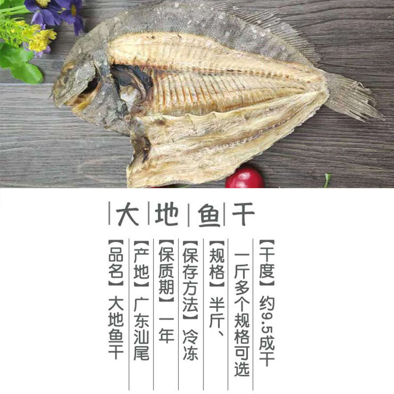 大地鱼干野生水产海鲜干货铁脯大号汕尾特产比目鱼鲽鱼云吞底料
