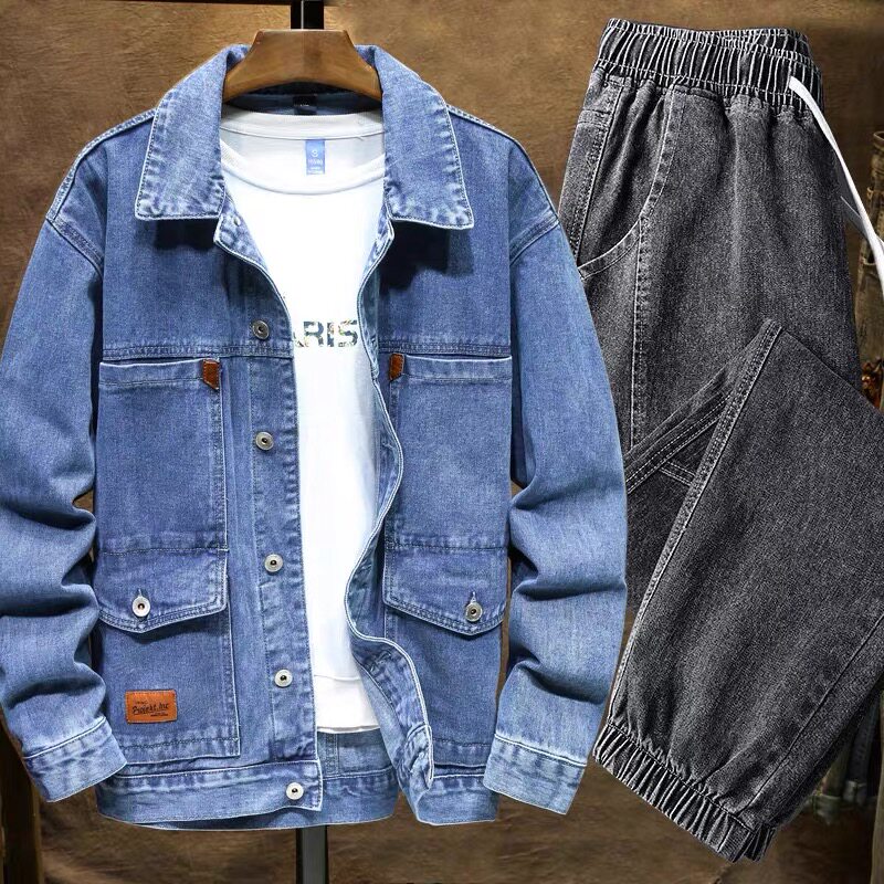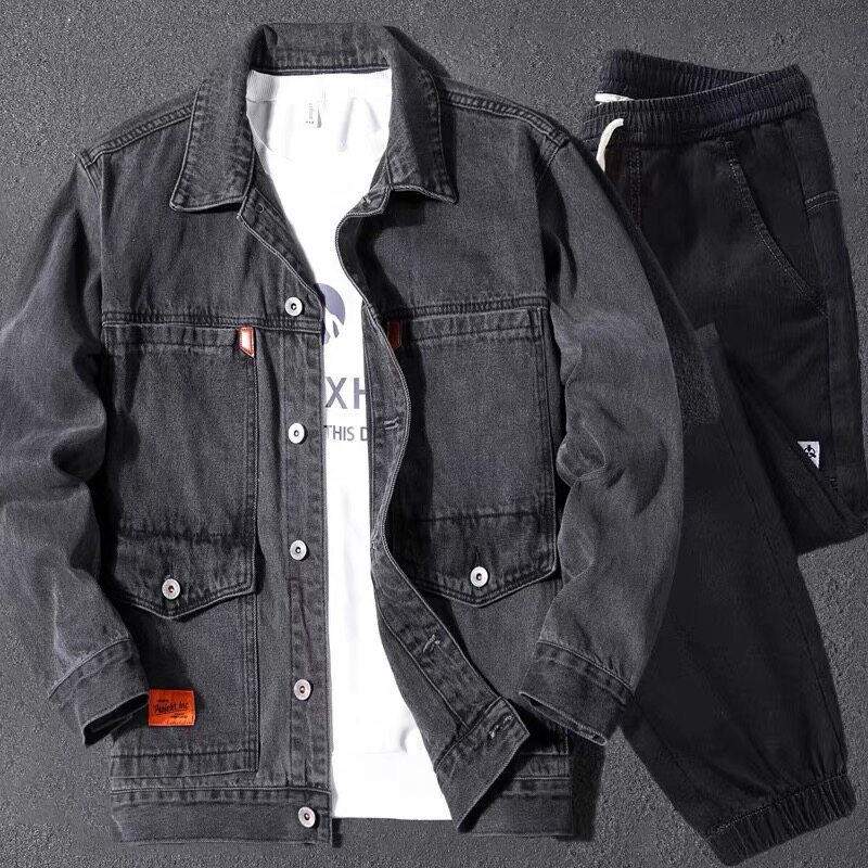 春秋季干活穿的外套牛仔工作服套装男焊工地耐磨耐穿劳保工作夹克