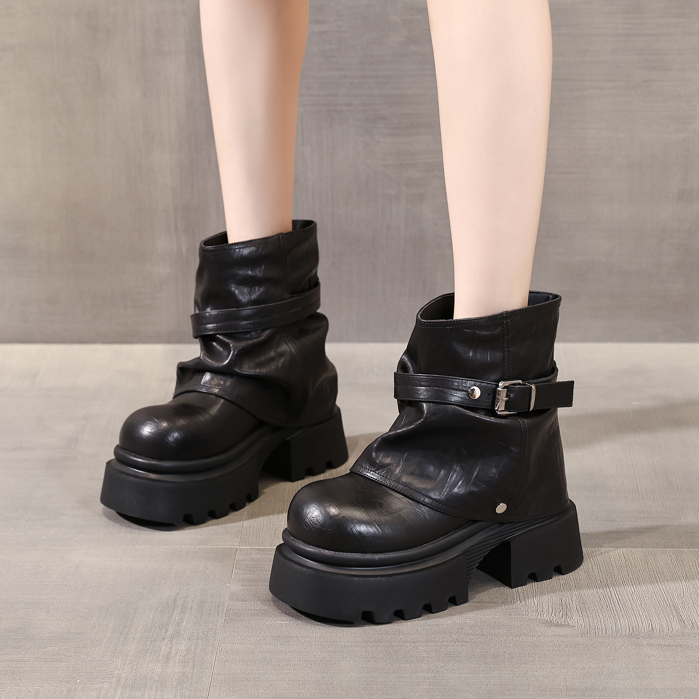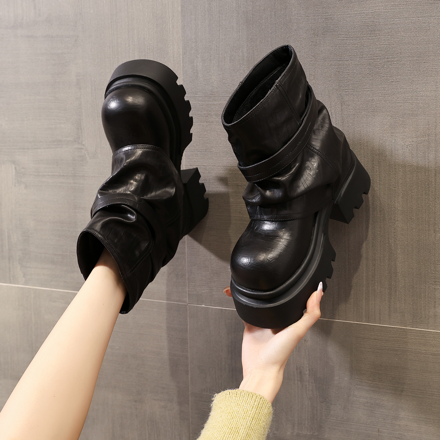 9CM内增高马丁靴女2025秋冬新款裤管靴厚底真皮爆款加绒休闲短靴