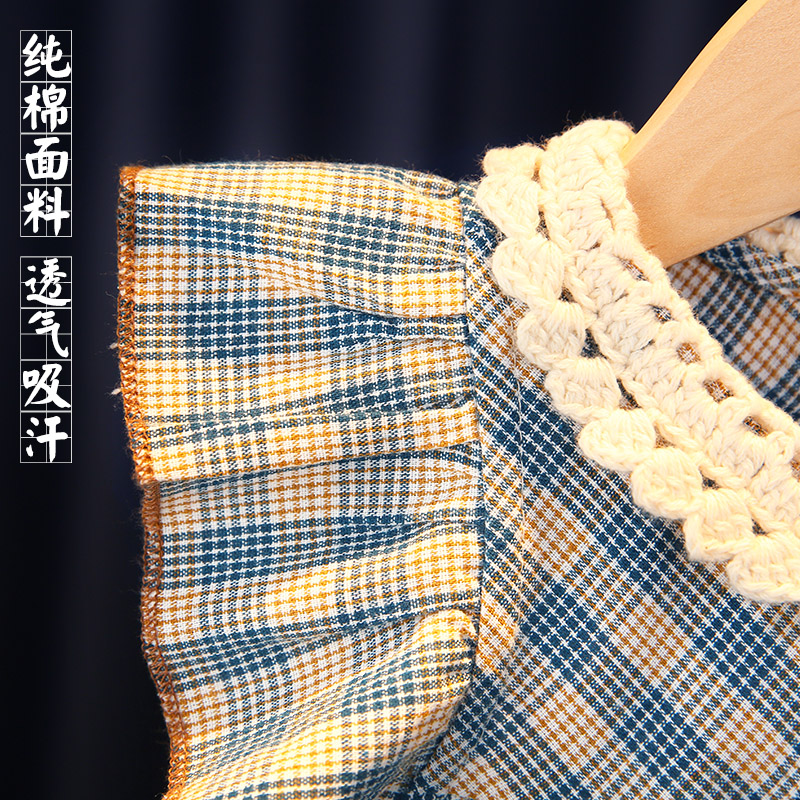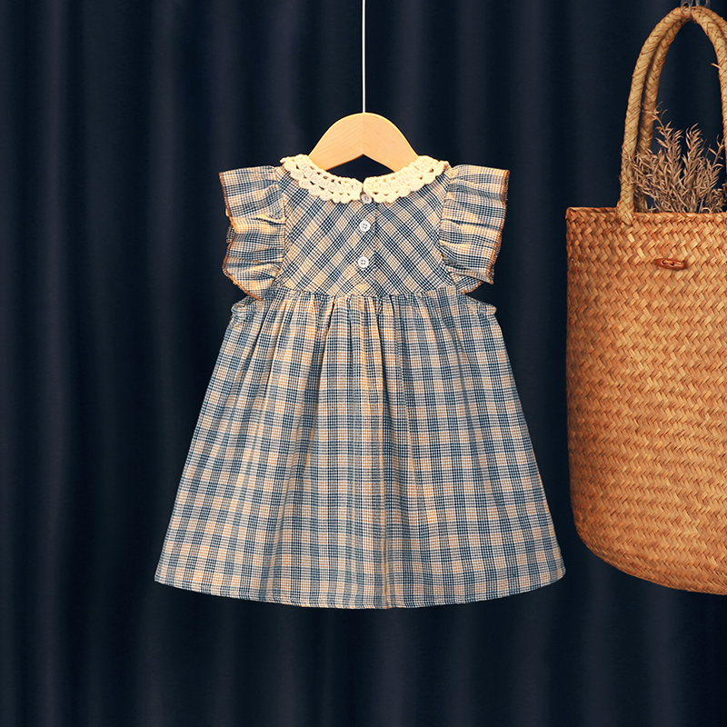 女童连衣裙夏2025新款女宝宝法式蓝色格子纯棉公主裙女孩夏装裙子