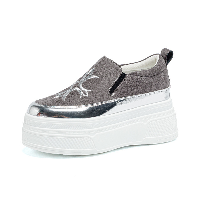 厚底内增高乐福鞋女2025年秋款懒人单鞋休闲松糕女鞋一脚蹬小白鞋
