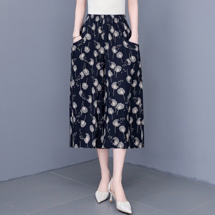 2025新款夏季薄款棉绸七分裤女大码宽松阔腿裤松紧高腰休闲裙裤子
