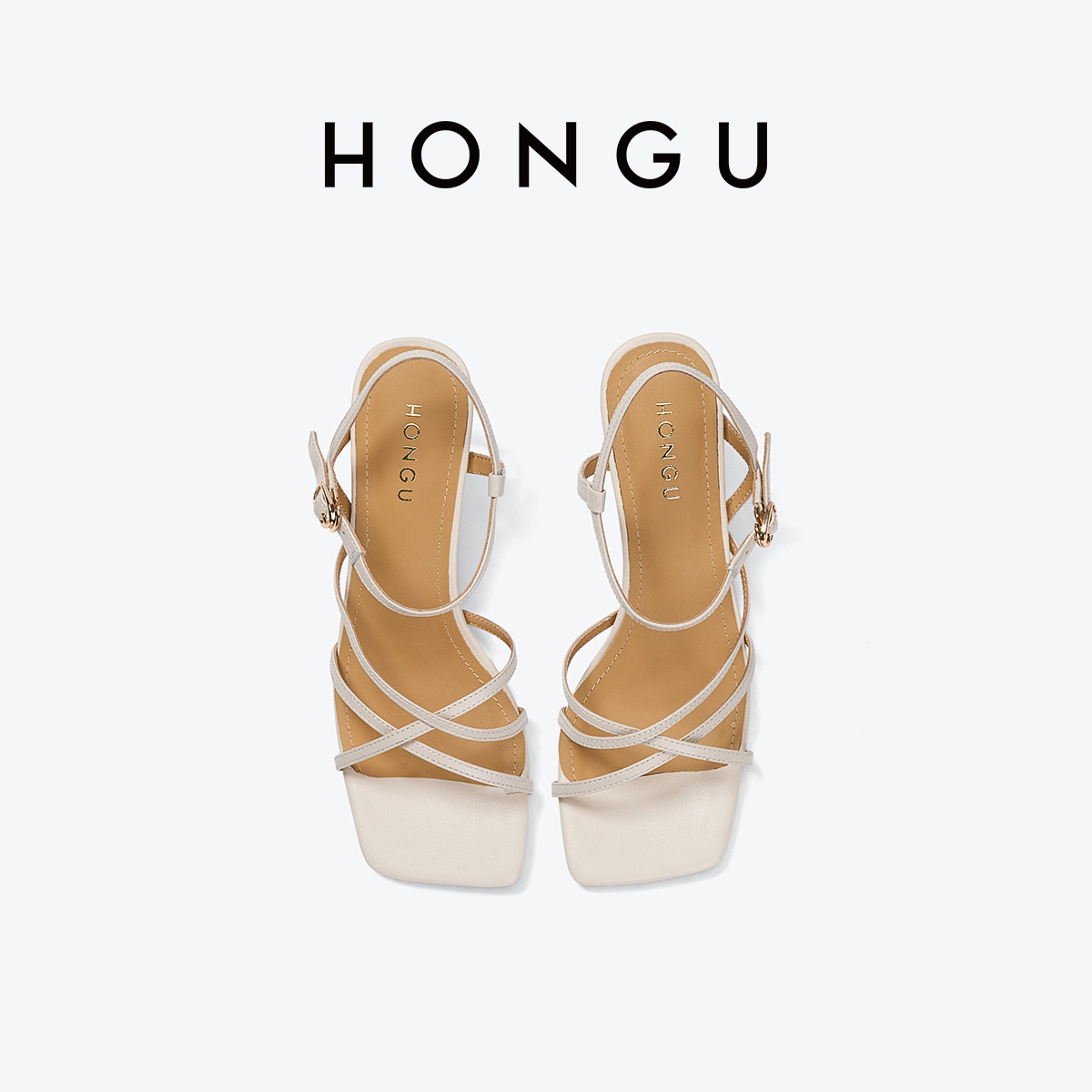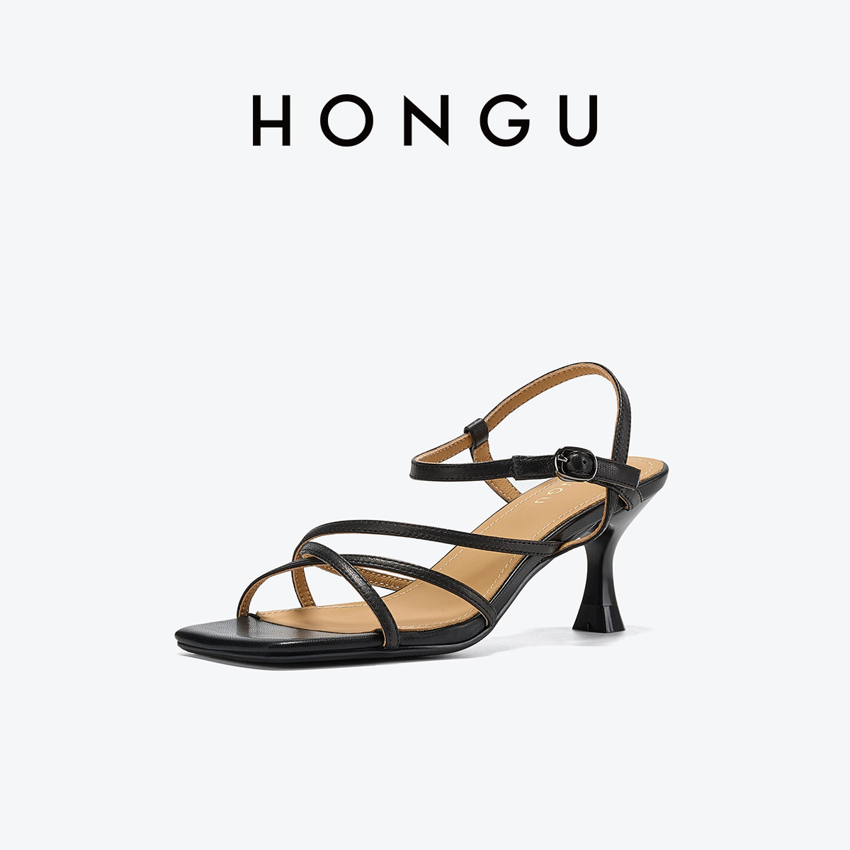 【夏日序章】HONGU交叉带高跟凉鞋女外穿2025夏新款时尚真皮单鞋