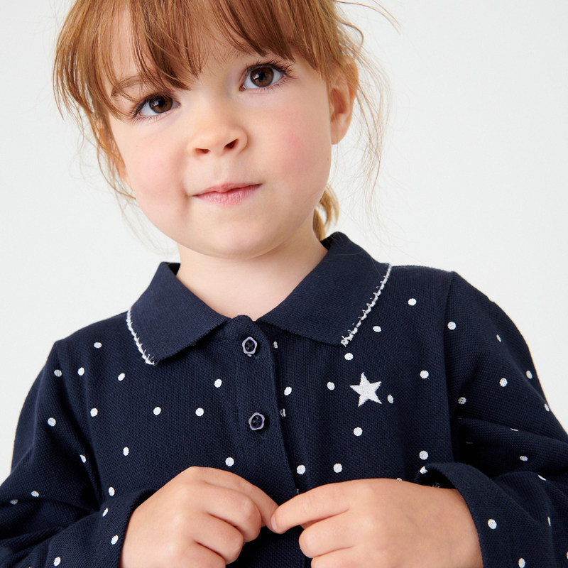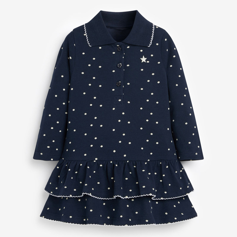 欧美春秋女童连衣裙女宝宝纯棉长袖Polo领运动休闲拼接蛋糕蓬蓬裙