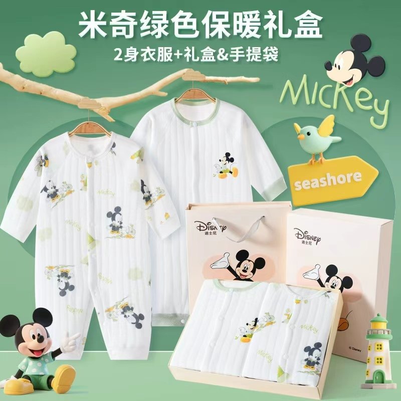 迪士尼婴儿衣服礼盒初生连体衣纯棉哈衣套装秋冬打底衣满月周岁礼