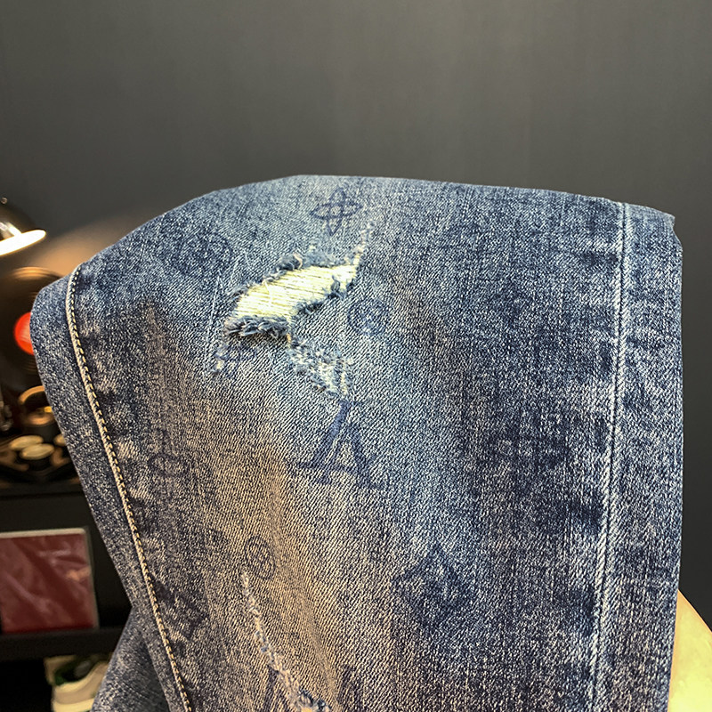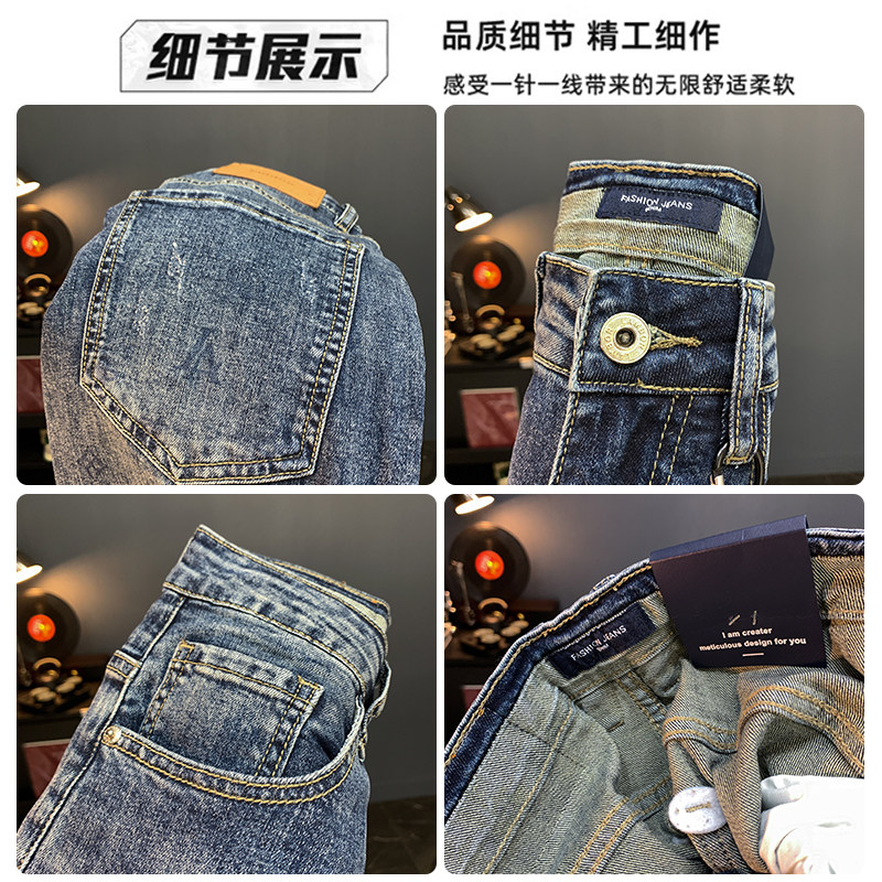 大牌高端欧货牛仔裤男夏季薄款修身小脚裤潮牌轻奢破洞弹力九分裤