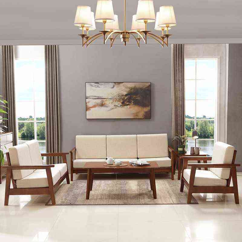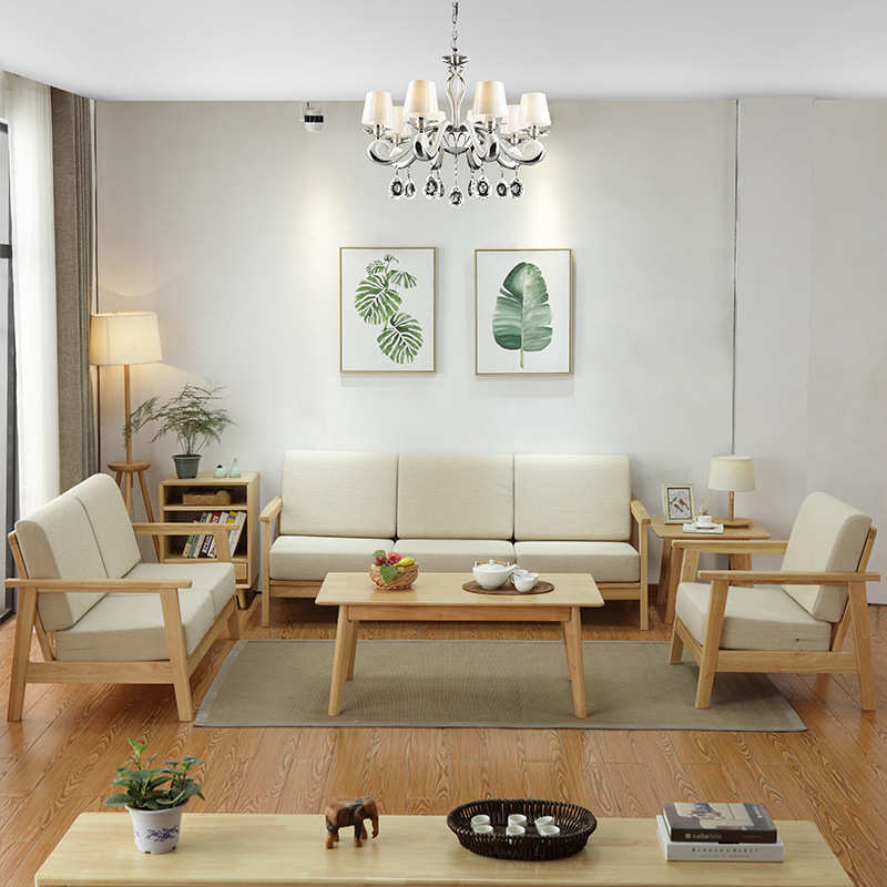 日式简约客厅家具橡木组合沙发可拆洗北欧风软包小户型全实木沙发