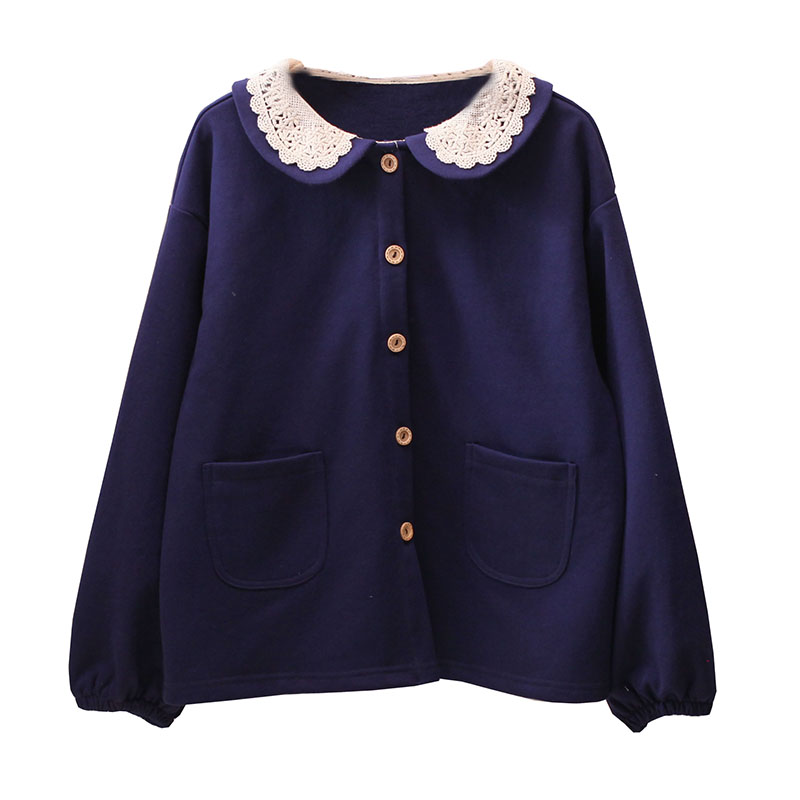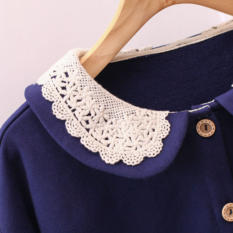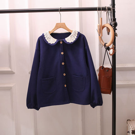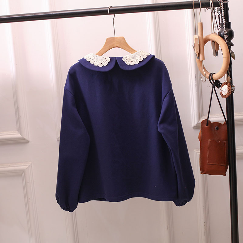 日系娃娃领长袖卫衣女上衣外套宽松百搭减龄文艺小清新大码设计感