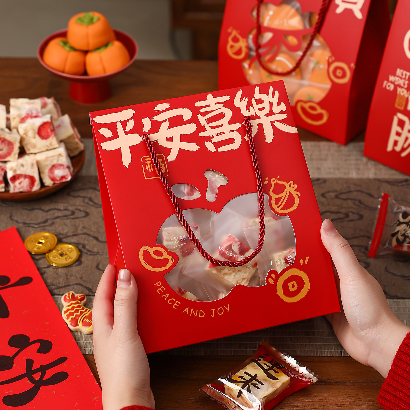 2026马年雪花酥曲奇饼干牛轧糖果打包手提袋子新年款包装空盒礼盒