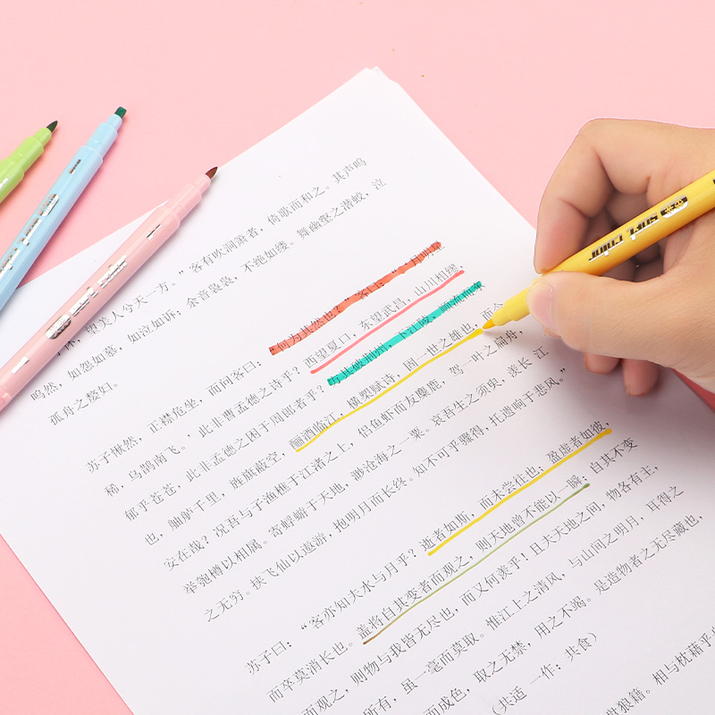 宝克官方正品柔和护眼多彩色荧光笔MP4908标记笔6色涂鸦笔绘画笔组合双头设计