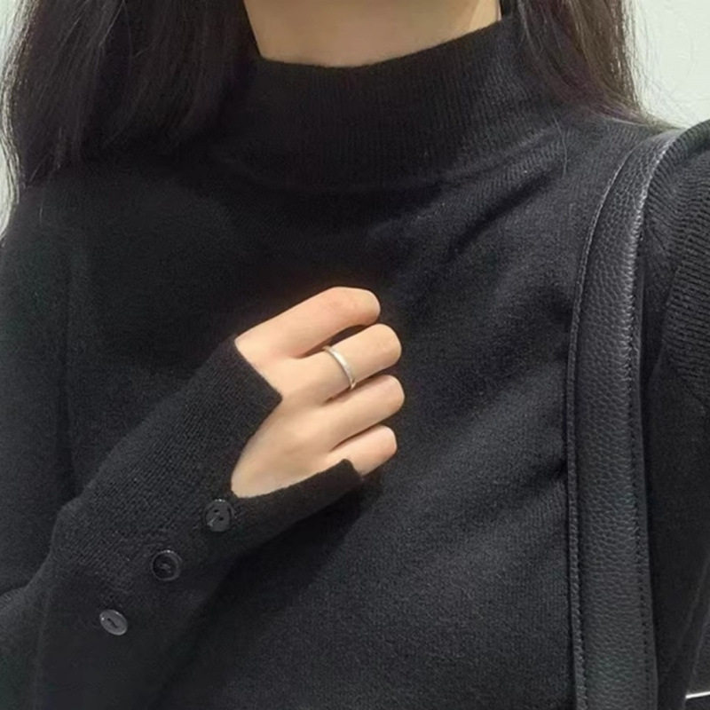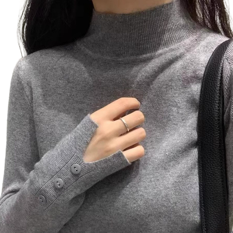 高档灰色半高领毛衣女外穿秋冬内搭修身中领针织衫别致打底衫修身
