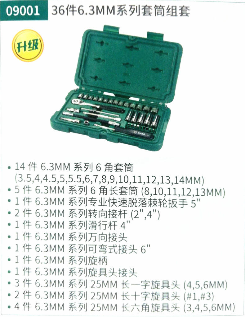 SATA世达工具 五金汽车维修组套套筒棘轮扳手60件09004 36件09001