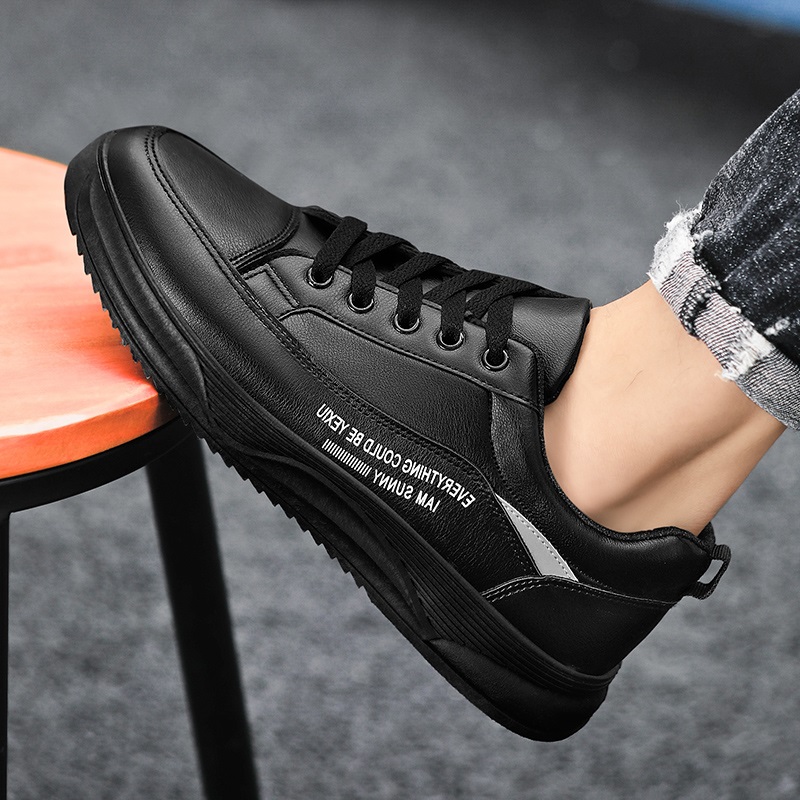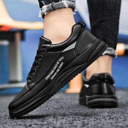 男鞋37 38小码全黑色板鞋青少年耐脏防水皮鞋中小学生休闲运动鞋