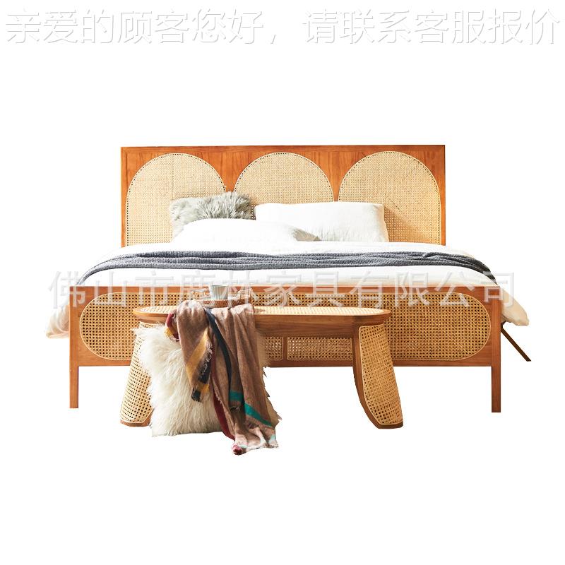 北欧实床现代床简约1.木8藤编床主卧双人宿创意藤民116床1.5米小
