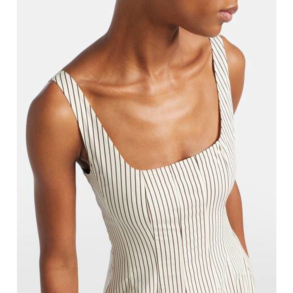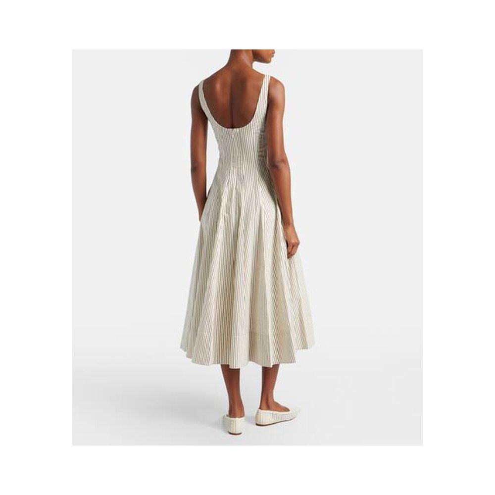 1h可退 潮奢 Staud 女士 条纹褶裥棉质中长连衣裙背带裙