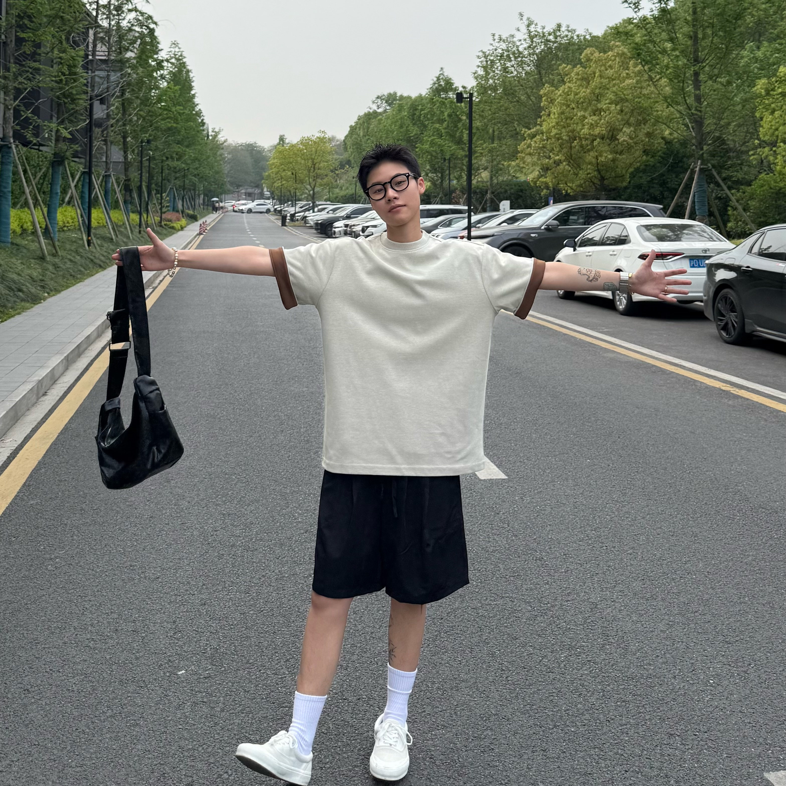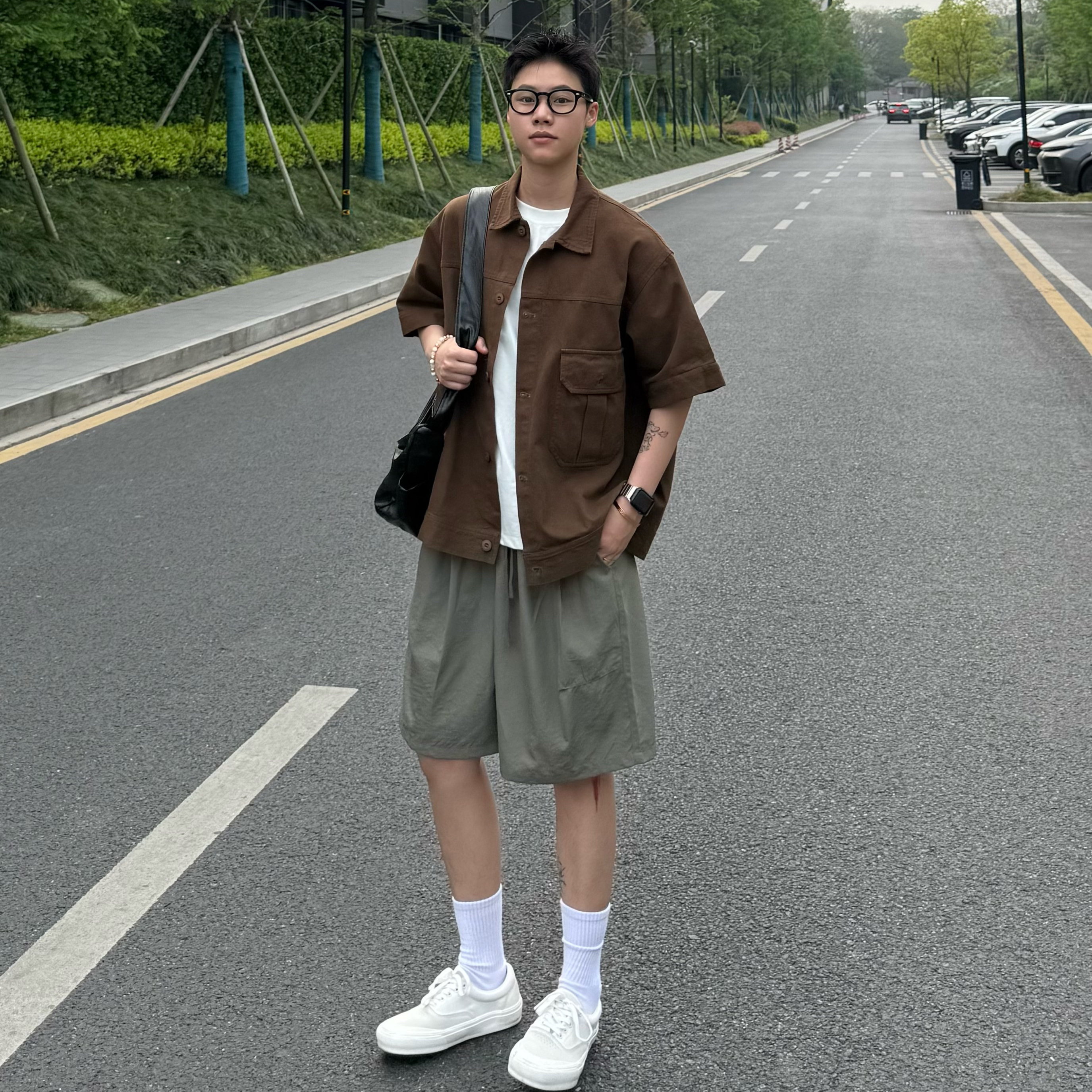 SIIIEND 夏季凉感抽绳日系新款复古简约宽松百搭短裤