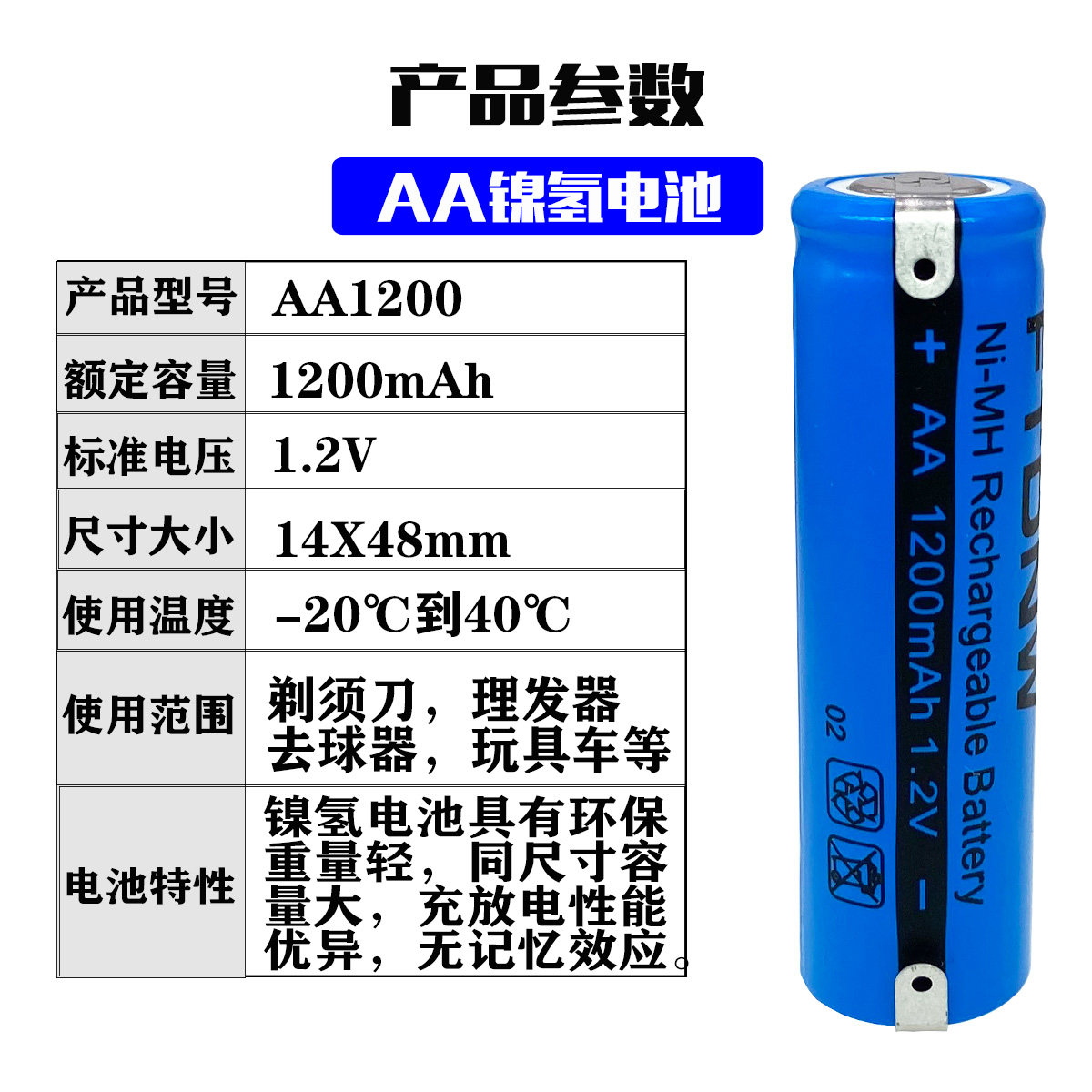 5号AA1200mAh剃须刀充电电池1.2V